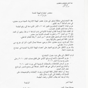 - ar محضر اجتماع الهيئة الادارية للجنة الاهالي :السبت 8، 1، 2011