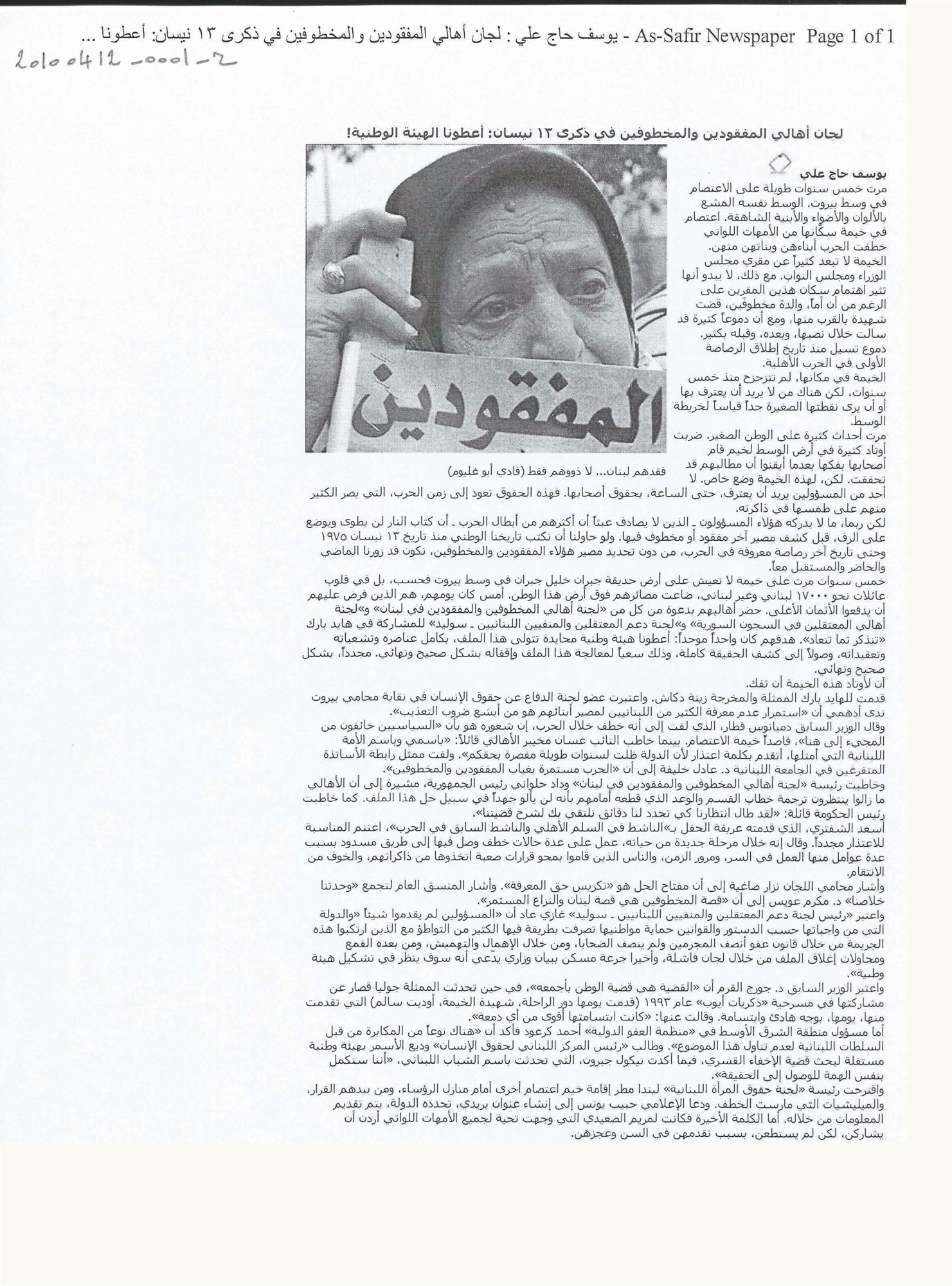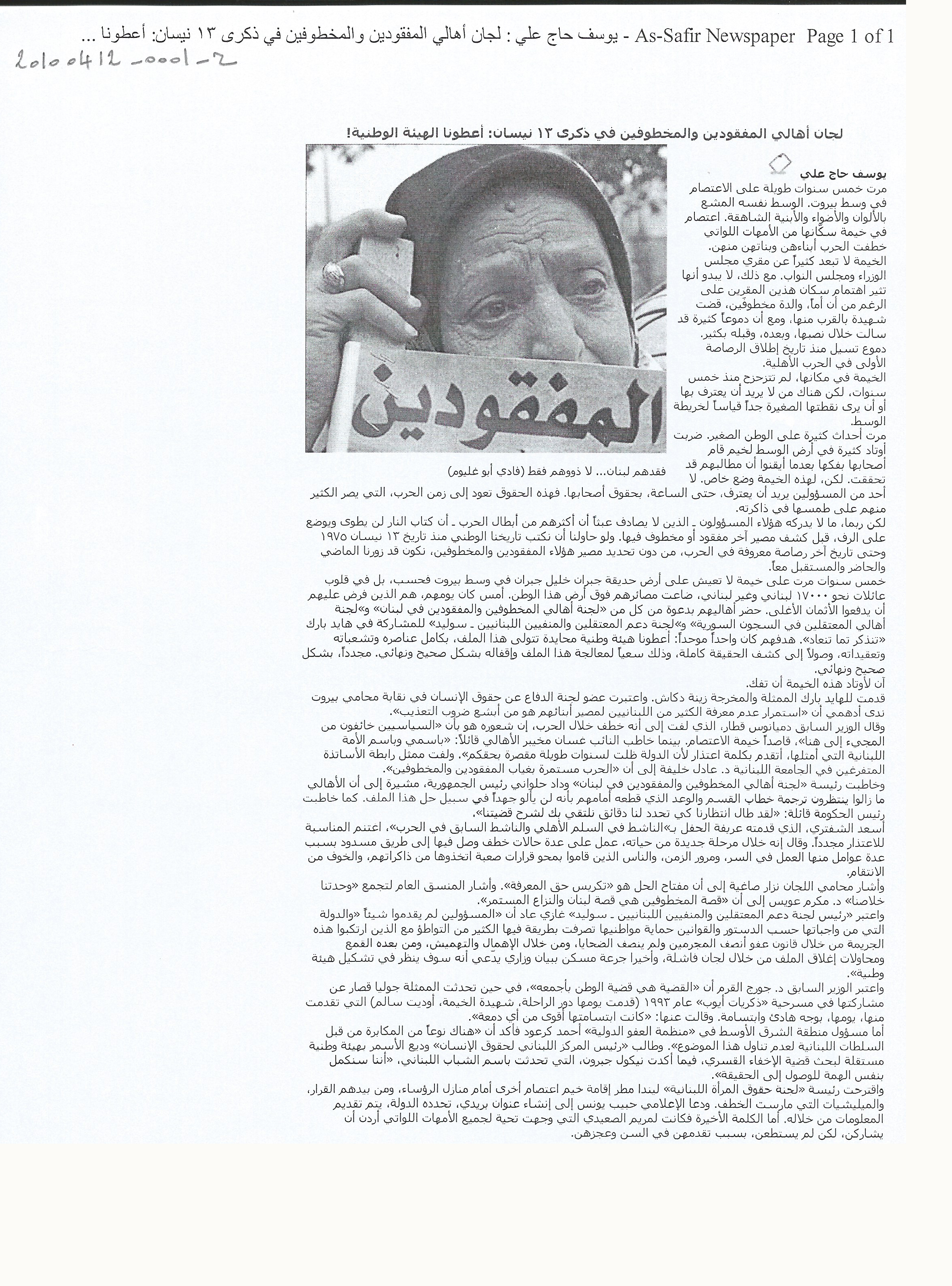 لجان اهالي المخطوفين والمفقودين في ذكرى 13 نيسان: اعطونا الهيئة الوطنية