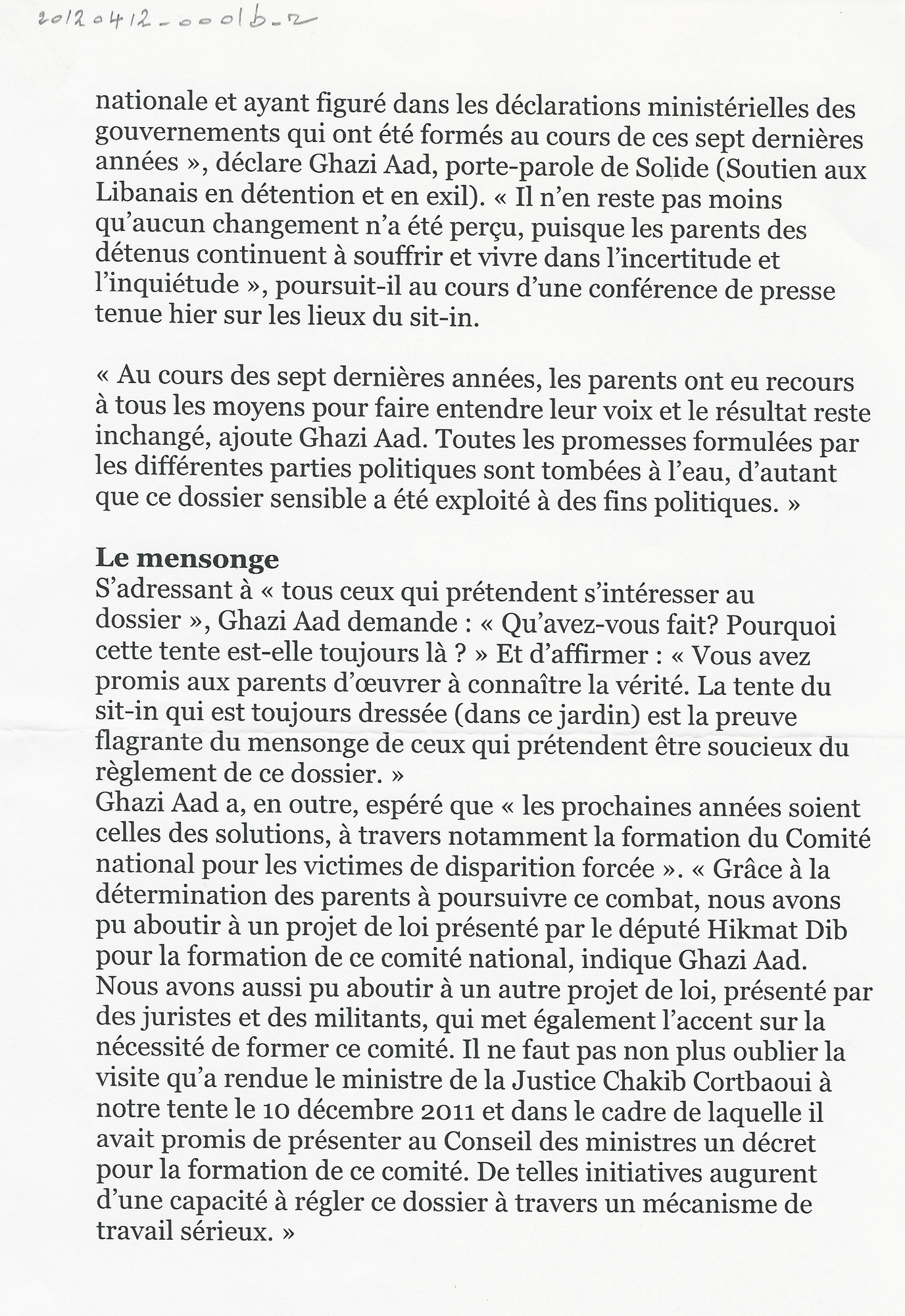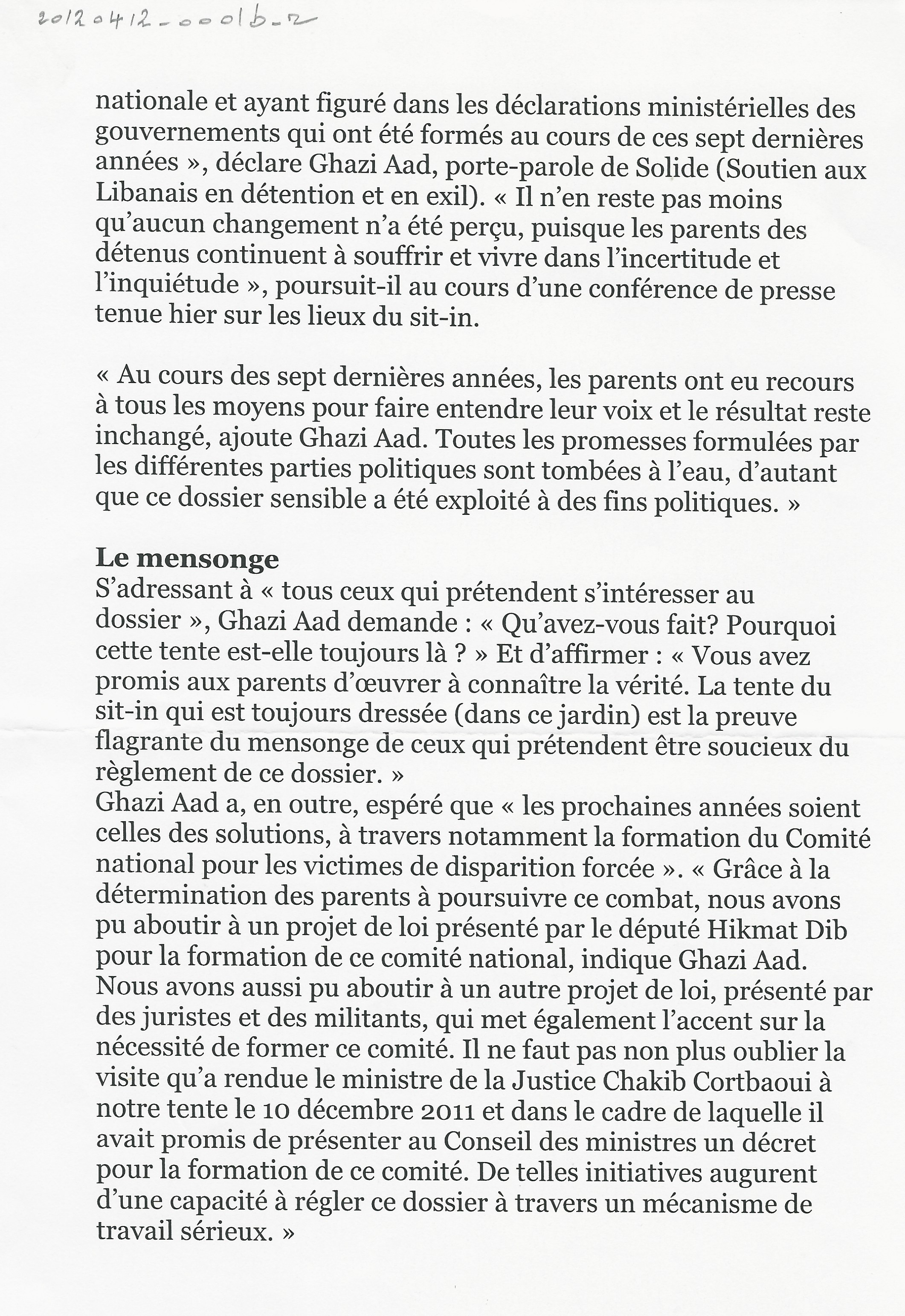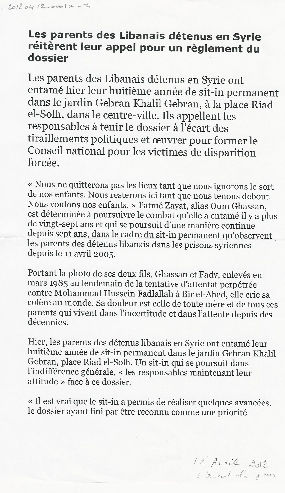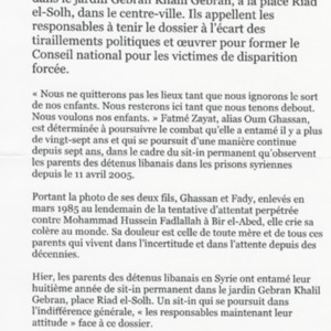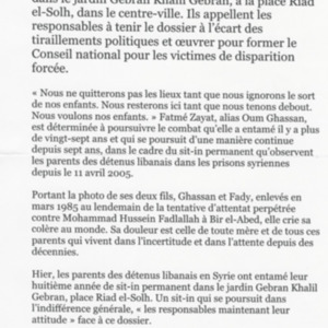 - fr Les parents des Libanais détenus en Syrie réitèrent leur appel pour un réglement du dossier