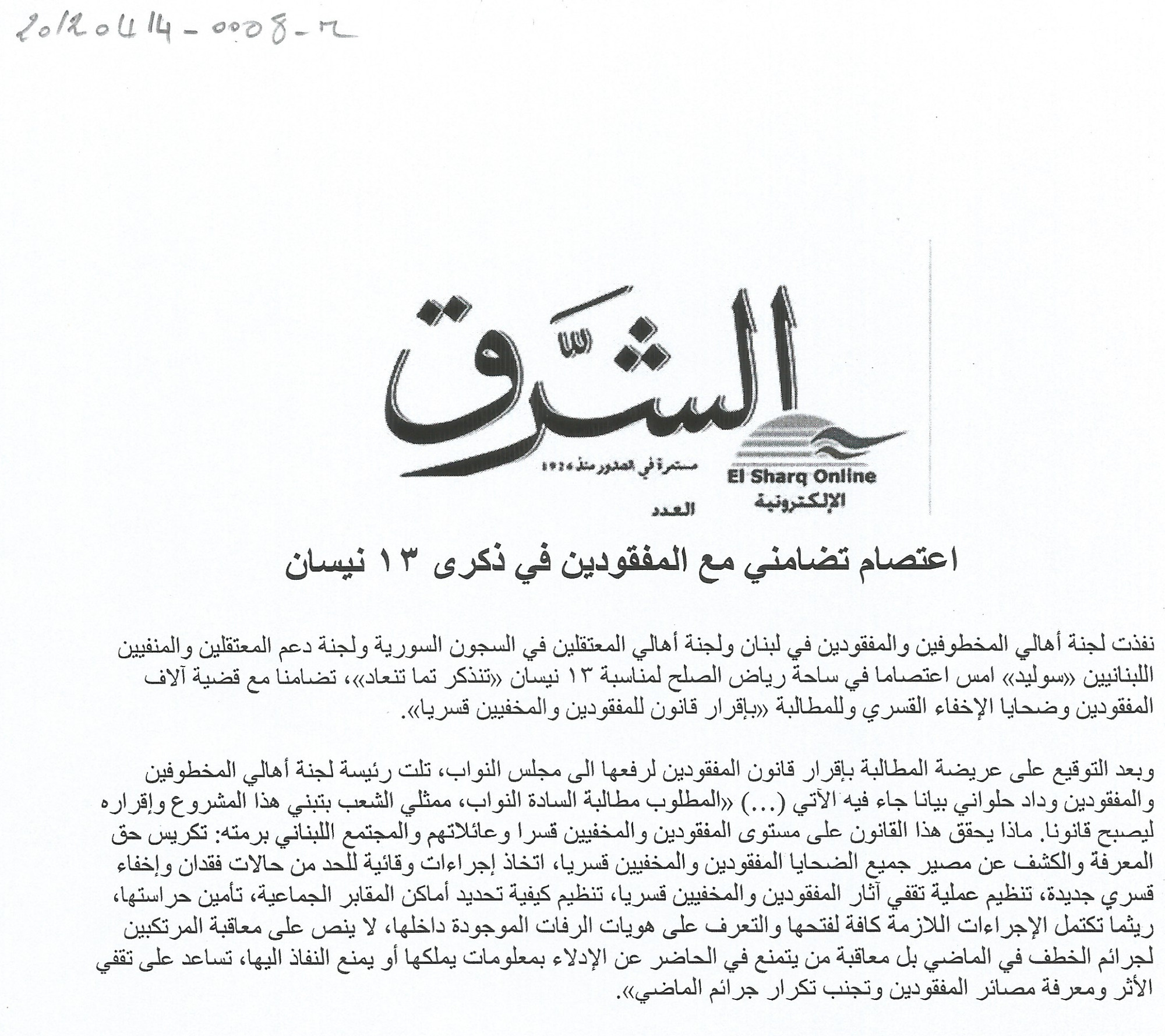 - ar اعتصام تضامني مع المفقودين في ذكرى 13 نيسان