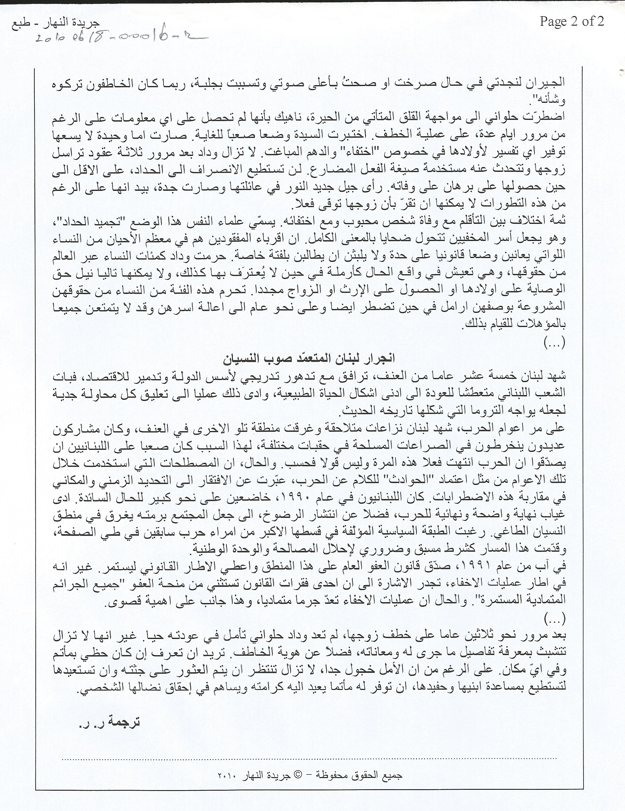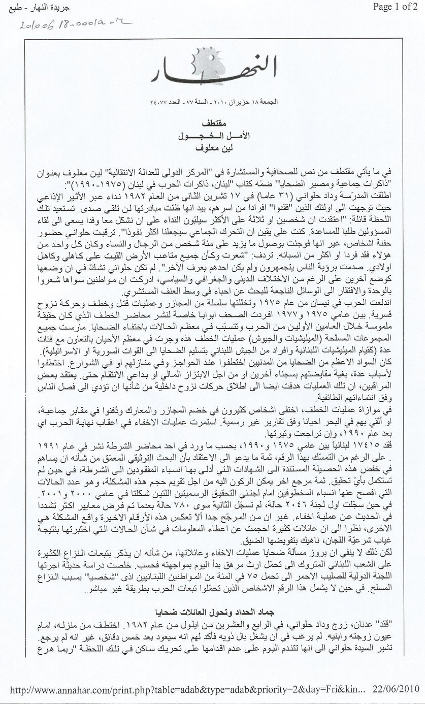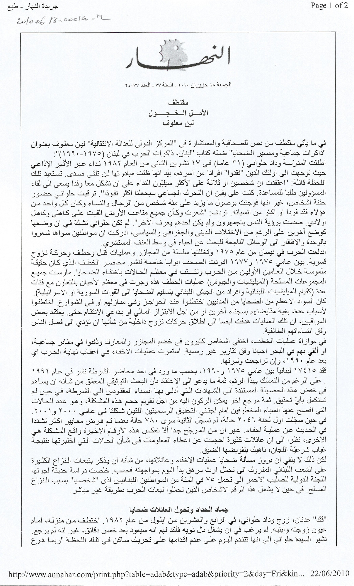 - النهار، العدد 24077، السنة 77
