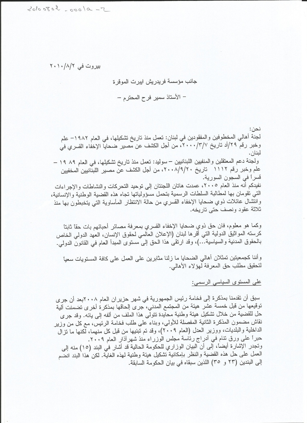 - لجنة اهالي المخطوفين والمفقودين في لبنان