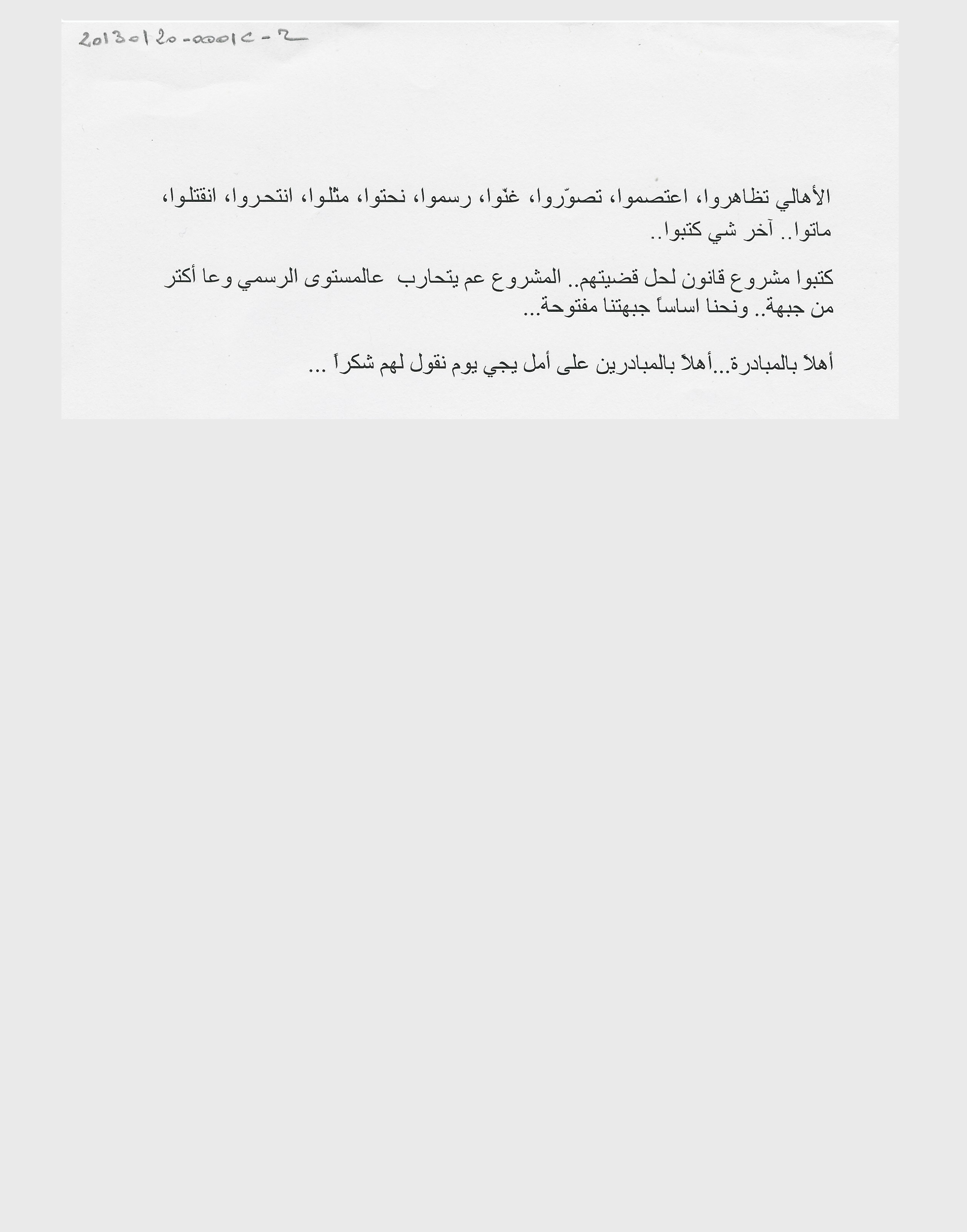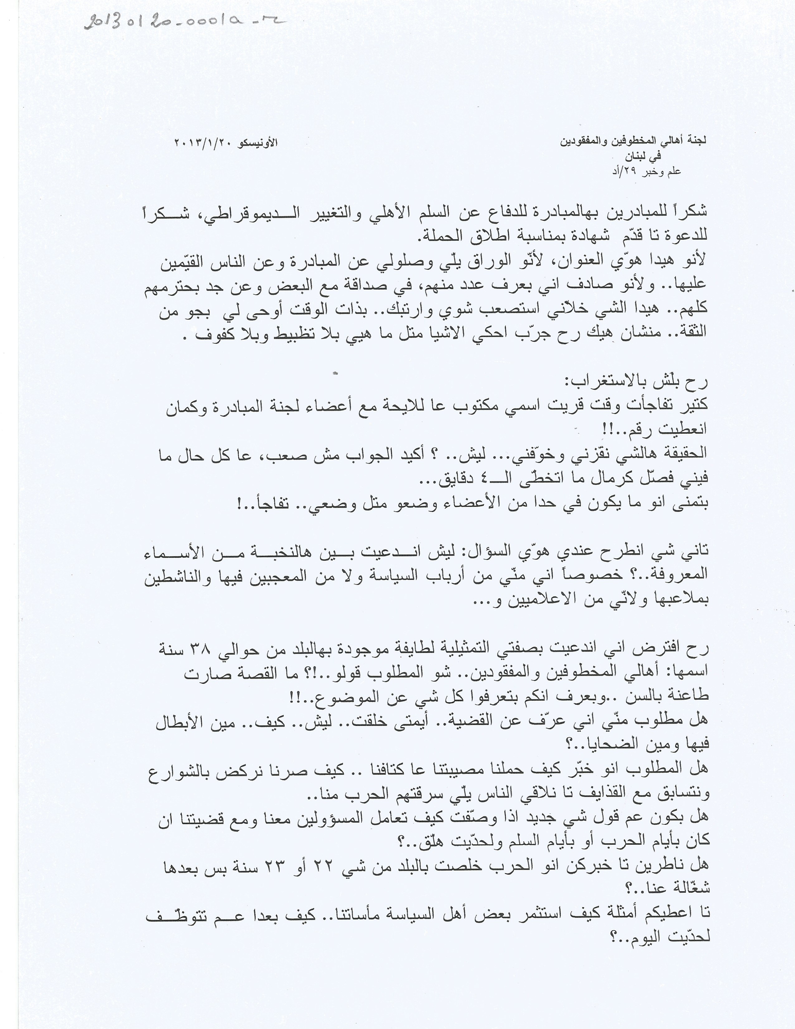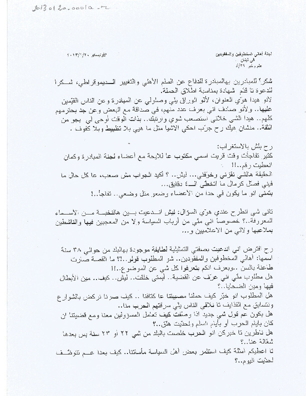 The invitation of the Committee of the Families to take part in the initiative to defend civil peace and democratic change.