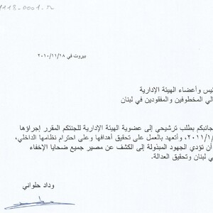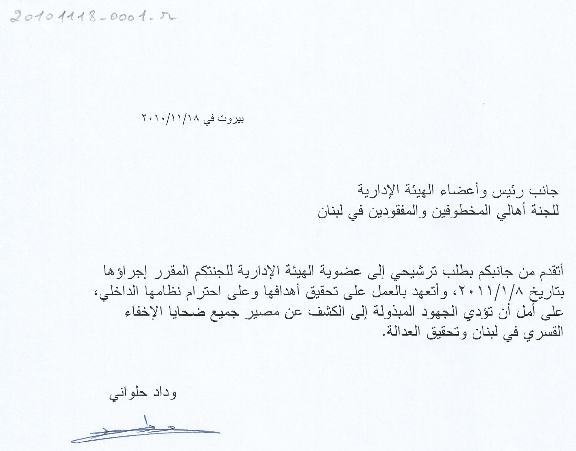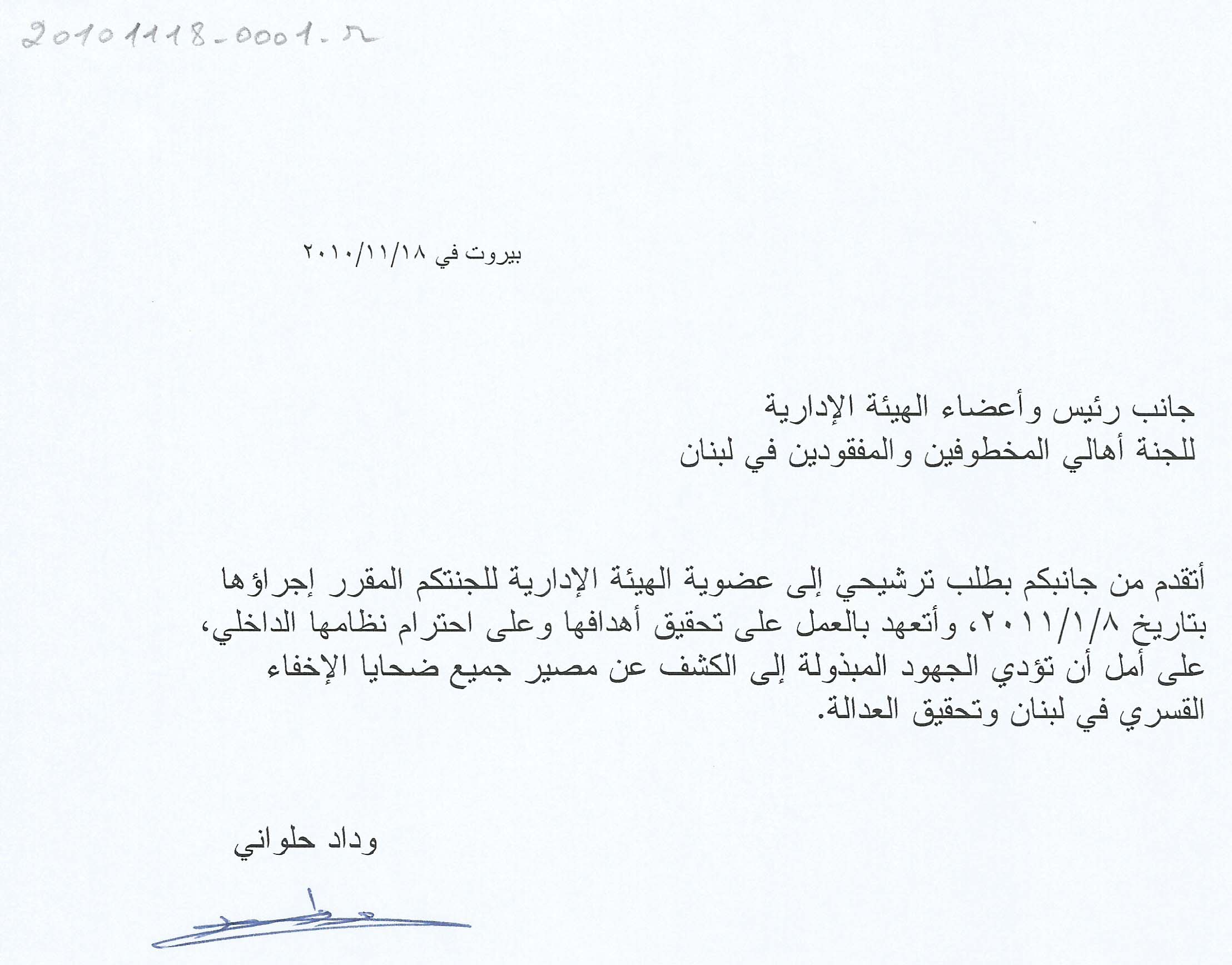 طلب ترشيح لعضوية الهيئة الادارية للجنة اهالي المخطوفين والمفقودين في لبنان