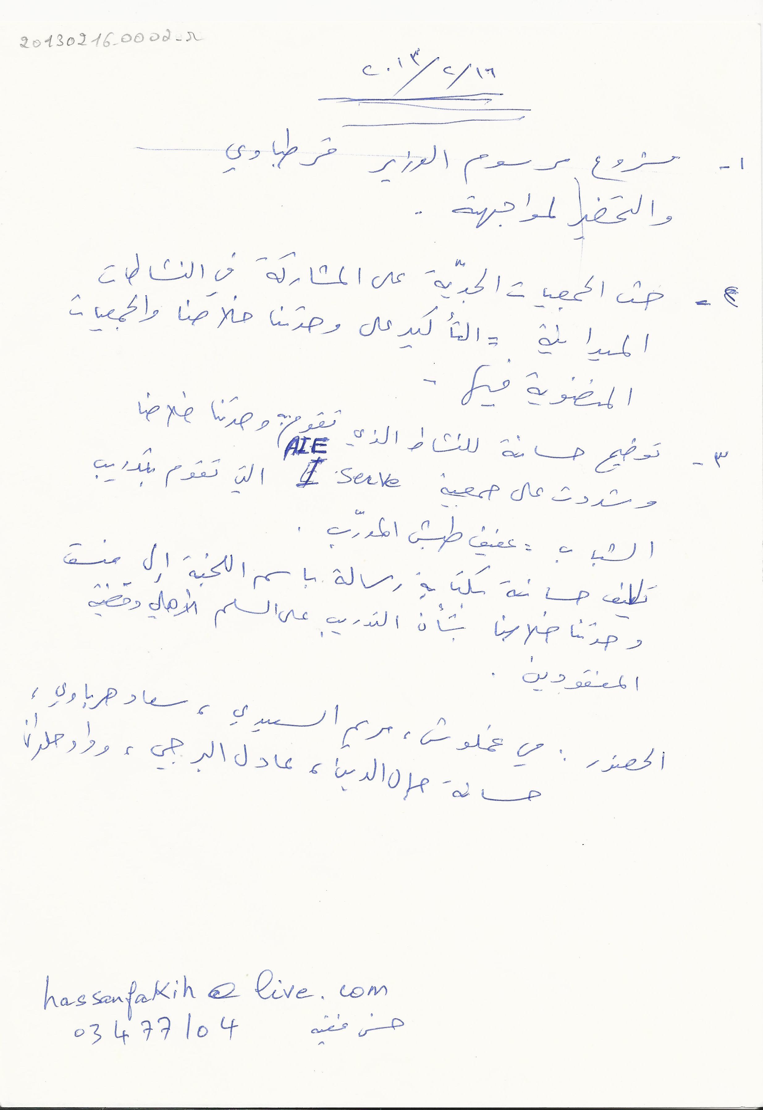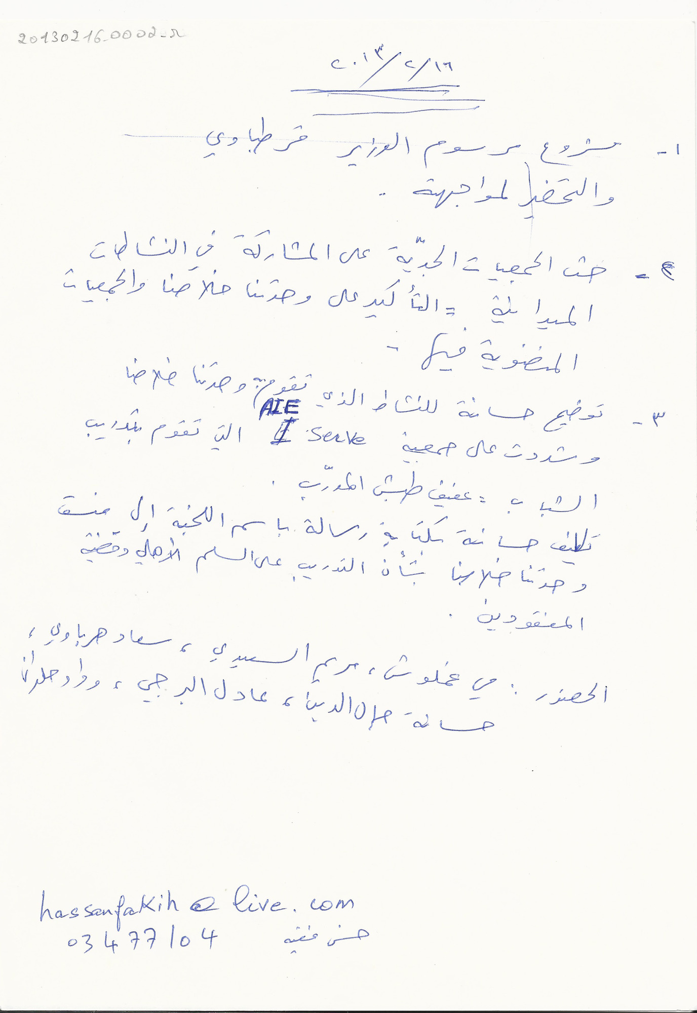 - ar محضر اجتماع الهيئة الادارية للجنة الاهالي :السبت، 16، 2، 2013