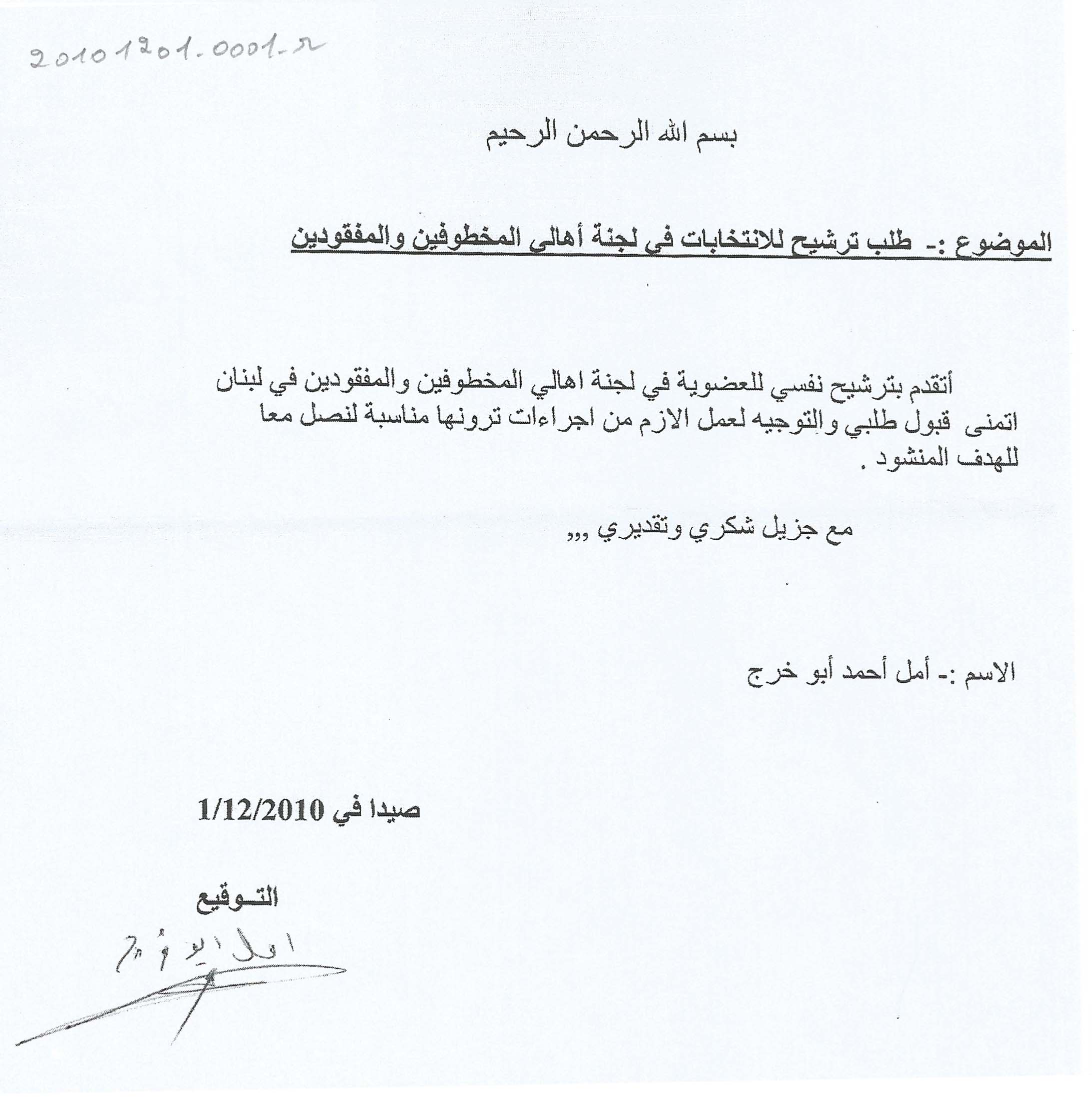 - ar طلب ترشيح للانتخابات في لجنة اهالي المخطوفين والمفقودين