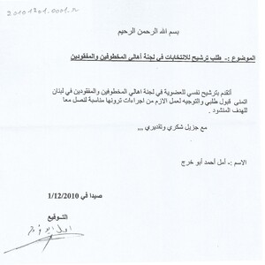 - en An application for candidacy for the elections of the Committee of the Families of the Kidnapped and Missing