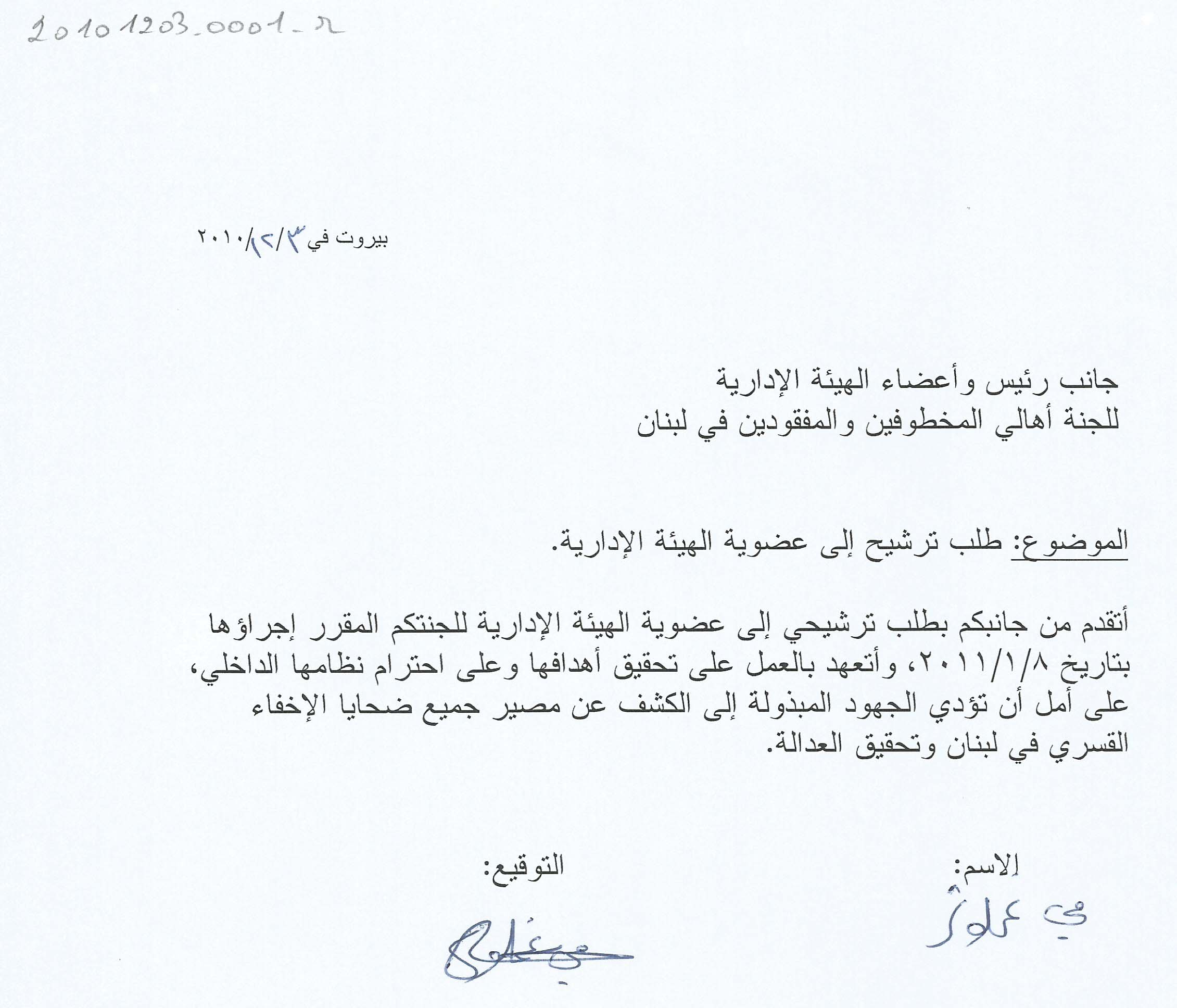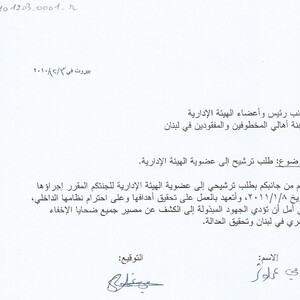 - ar طلب ترشيح لعضوية الهيئة الادارية للجنة اهالي المخطوفين والمفقودين في لبنان