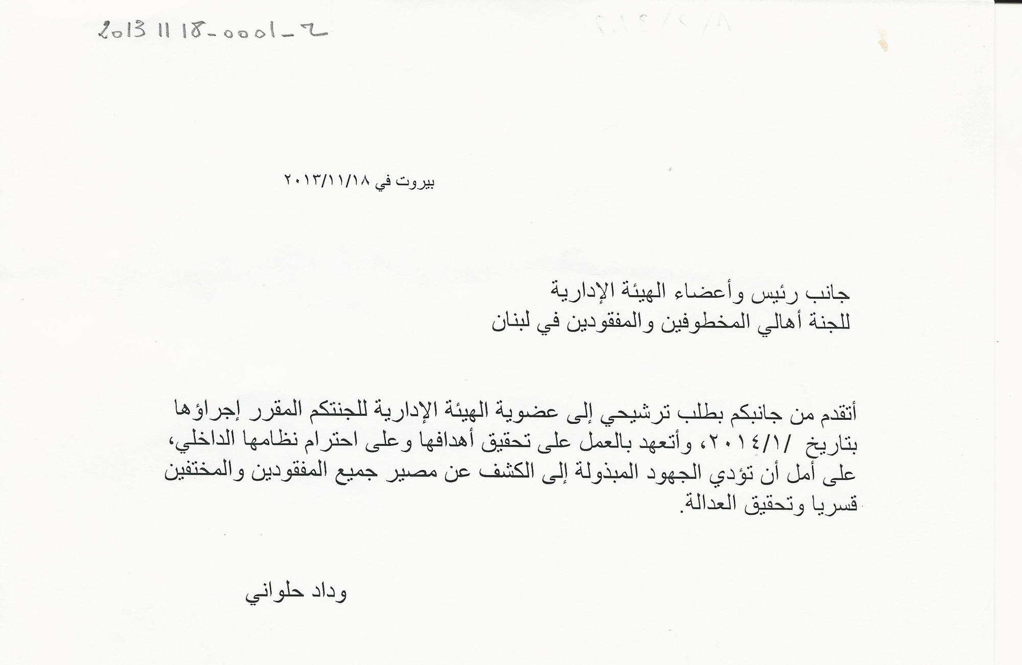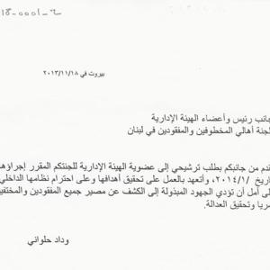 To the president and members of the administrative board of the Committee of the Families of the Kidnapped and Missing in Lebanon.