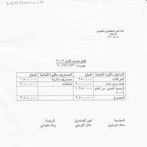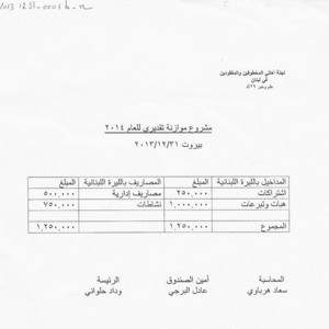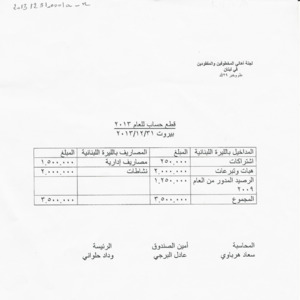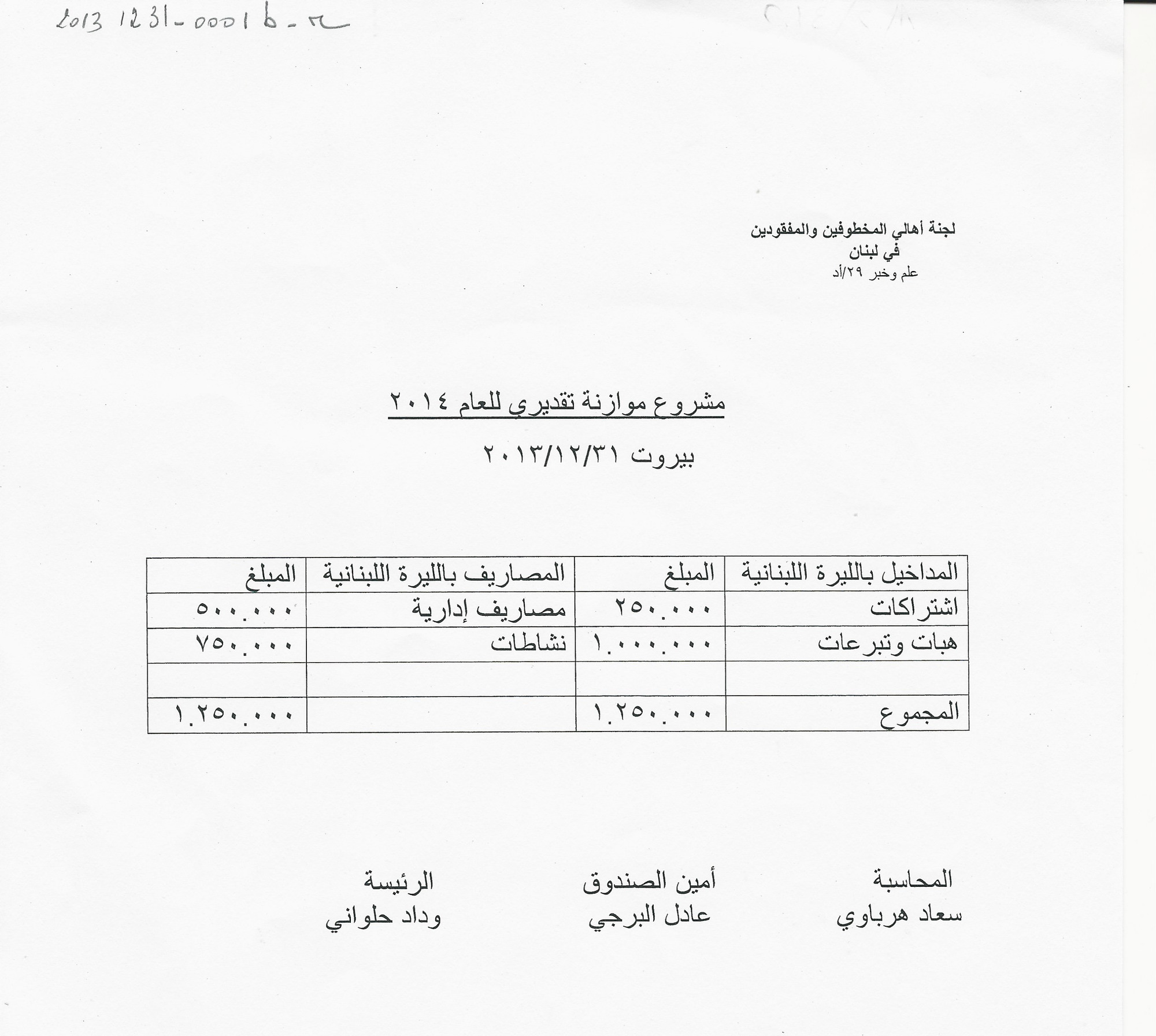 قطع حساب للعام، 2013 مشروع موازنة تقديري للعام، 2014