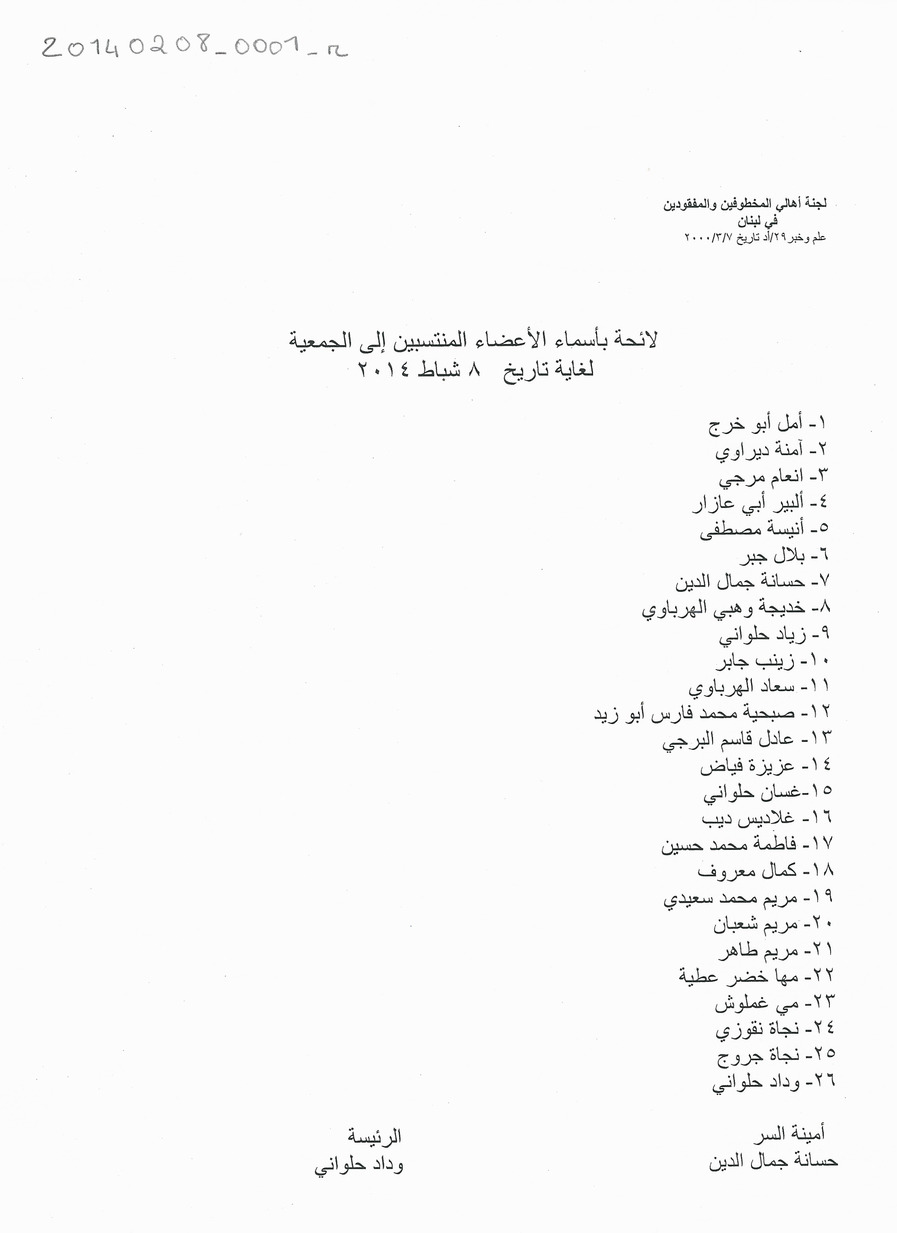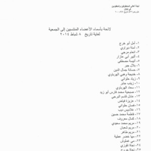 - ar لائحة باسماء الاعضاء المنتسبين الى الجمعية لغاية تاريخ 8 شباط، 2014
