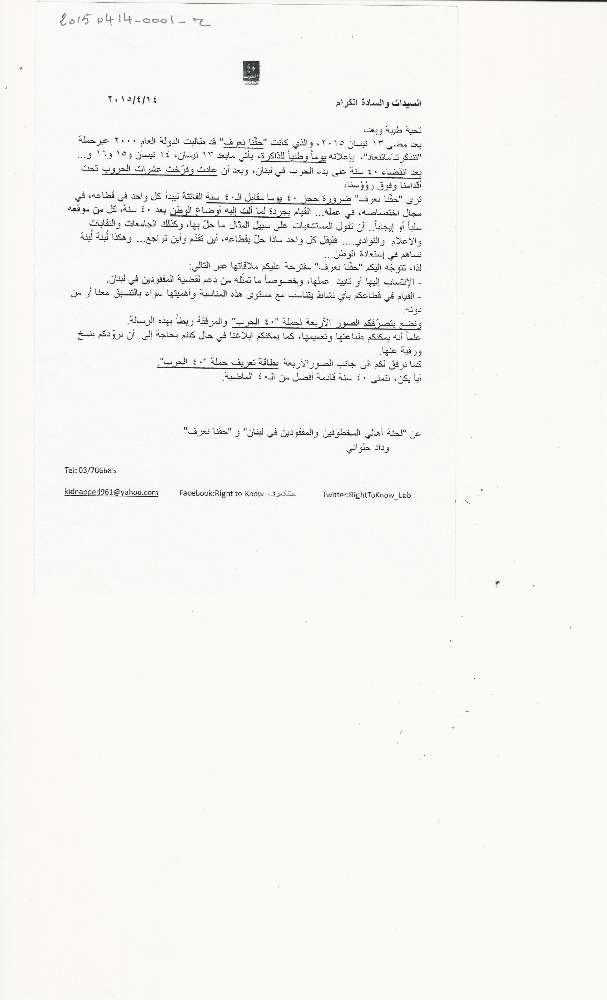 - لجنة اهالي المخطوفين والمفقودين في لبنان