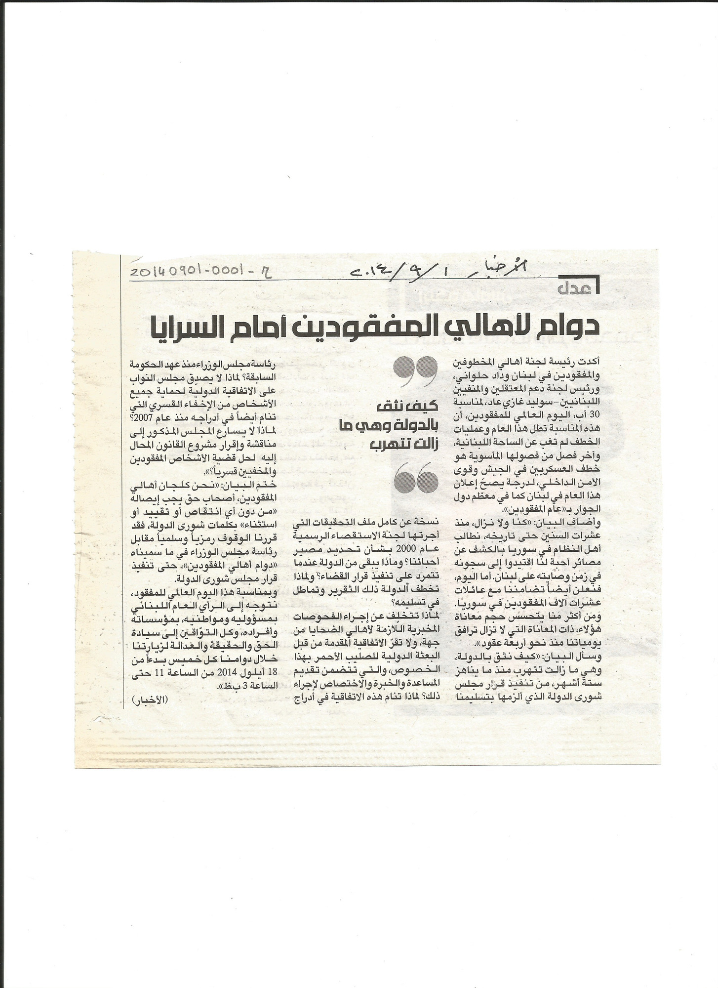- en The families of the missing frequent the surroundings of the Serail as though they’re on duty.