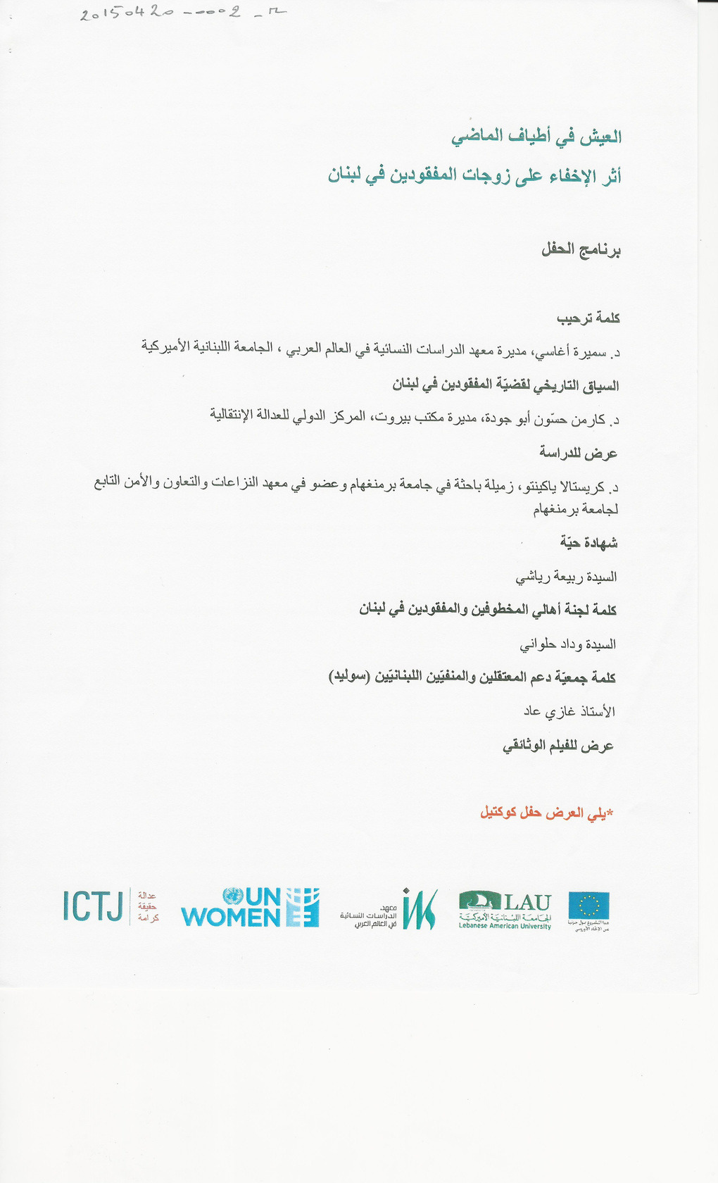 Program of the event: Living with the shadows of the past, The impact of disappearance on wives of the missing in Lebanon