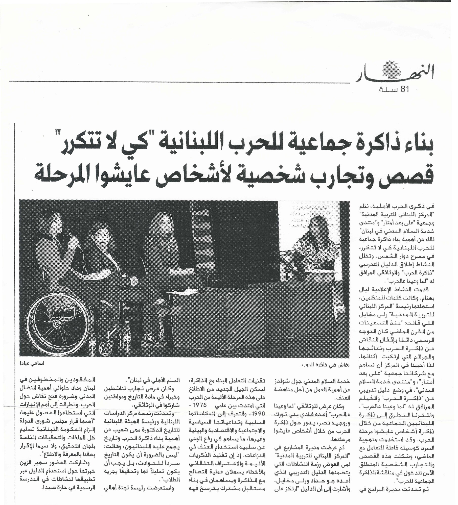 Building a collective memory of the Lebanese war lest it happens again: Personal stories shared by those who had experienced that phase.