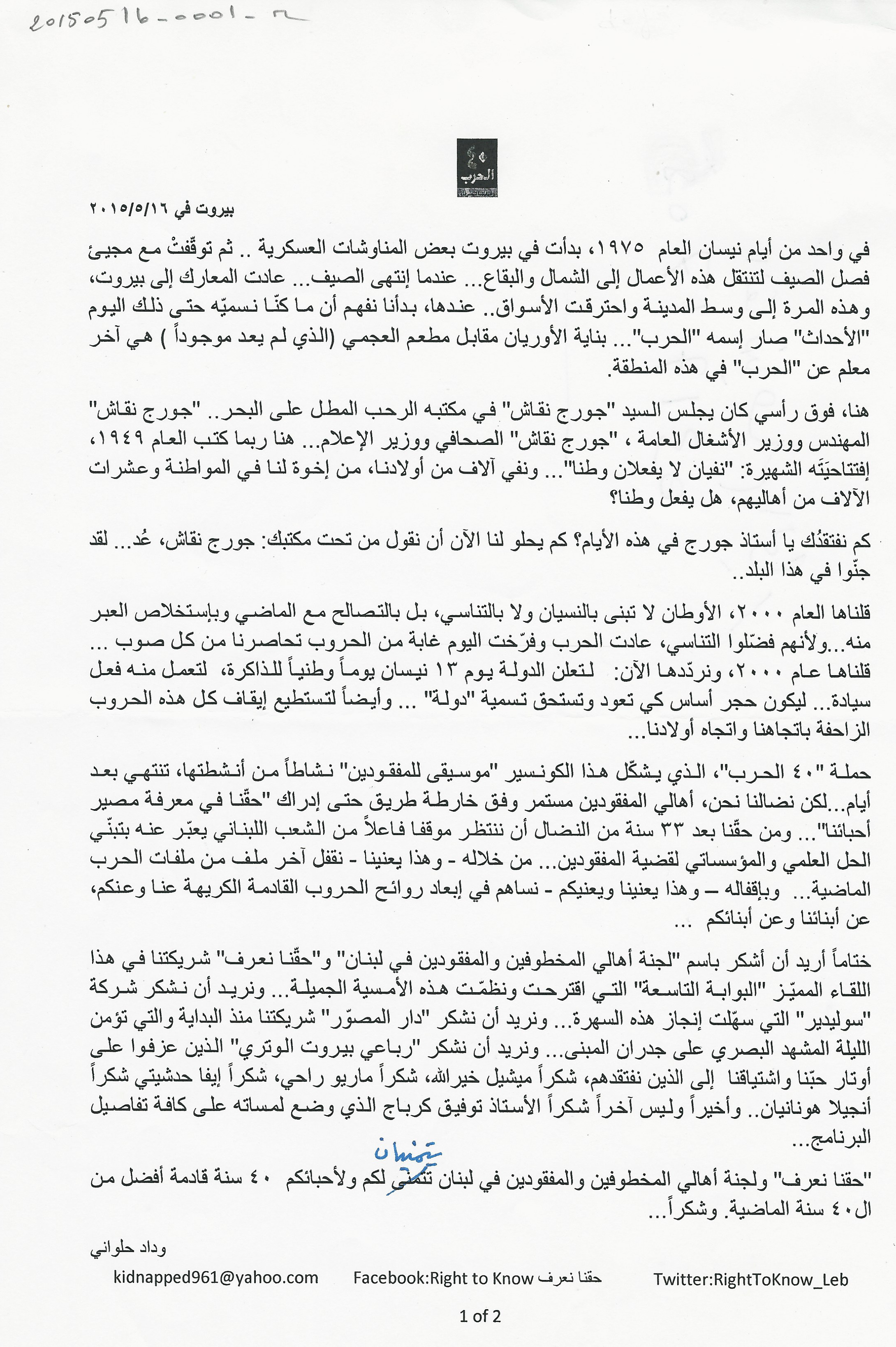 - لجنة اهالي المخطوفين والمفقودين في لبنان