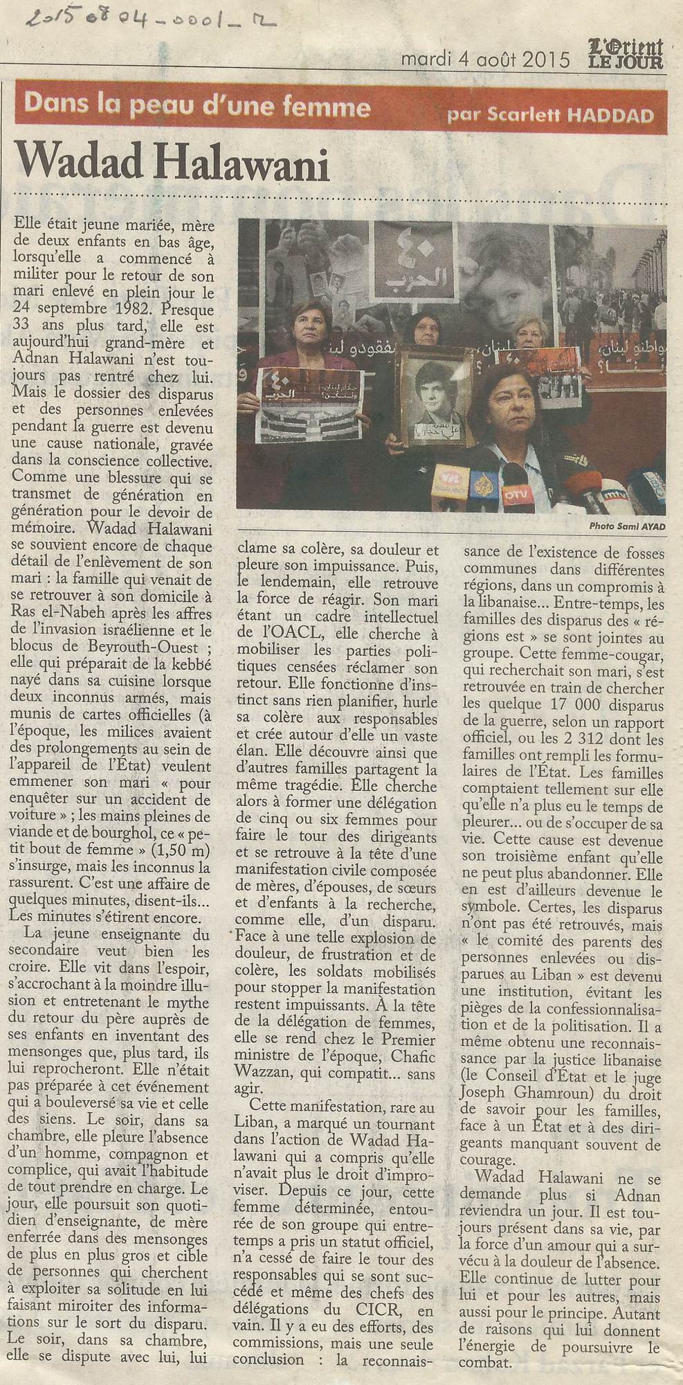 - fr Wadad Halawani, symbole de la cause des disparus de la guerre
