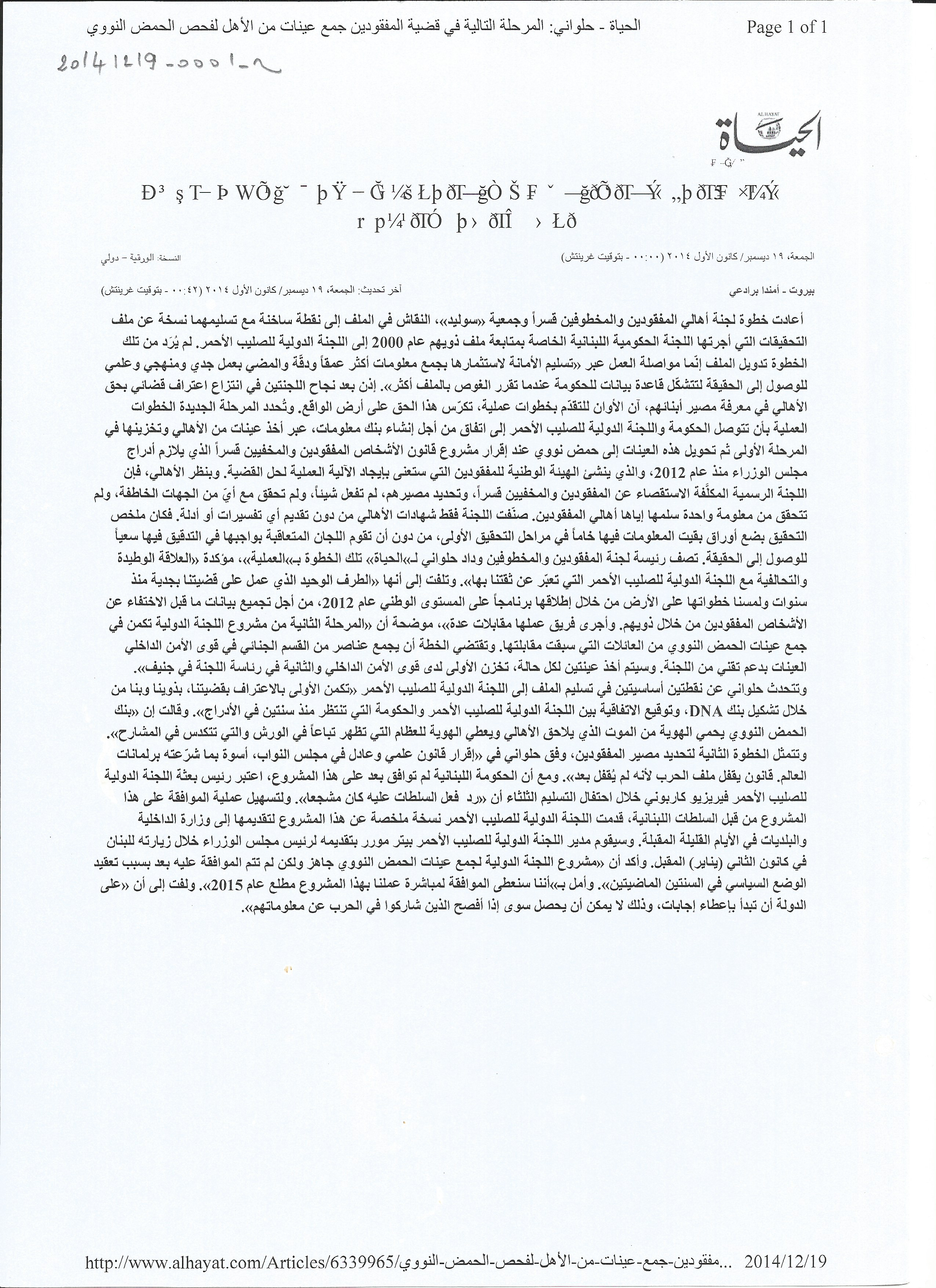 - ar حلواني: المرحلة التالية في قضية المفقودين جمع عينات من الاهل لفحص الحمض النووي