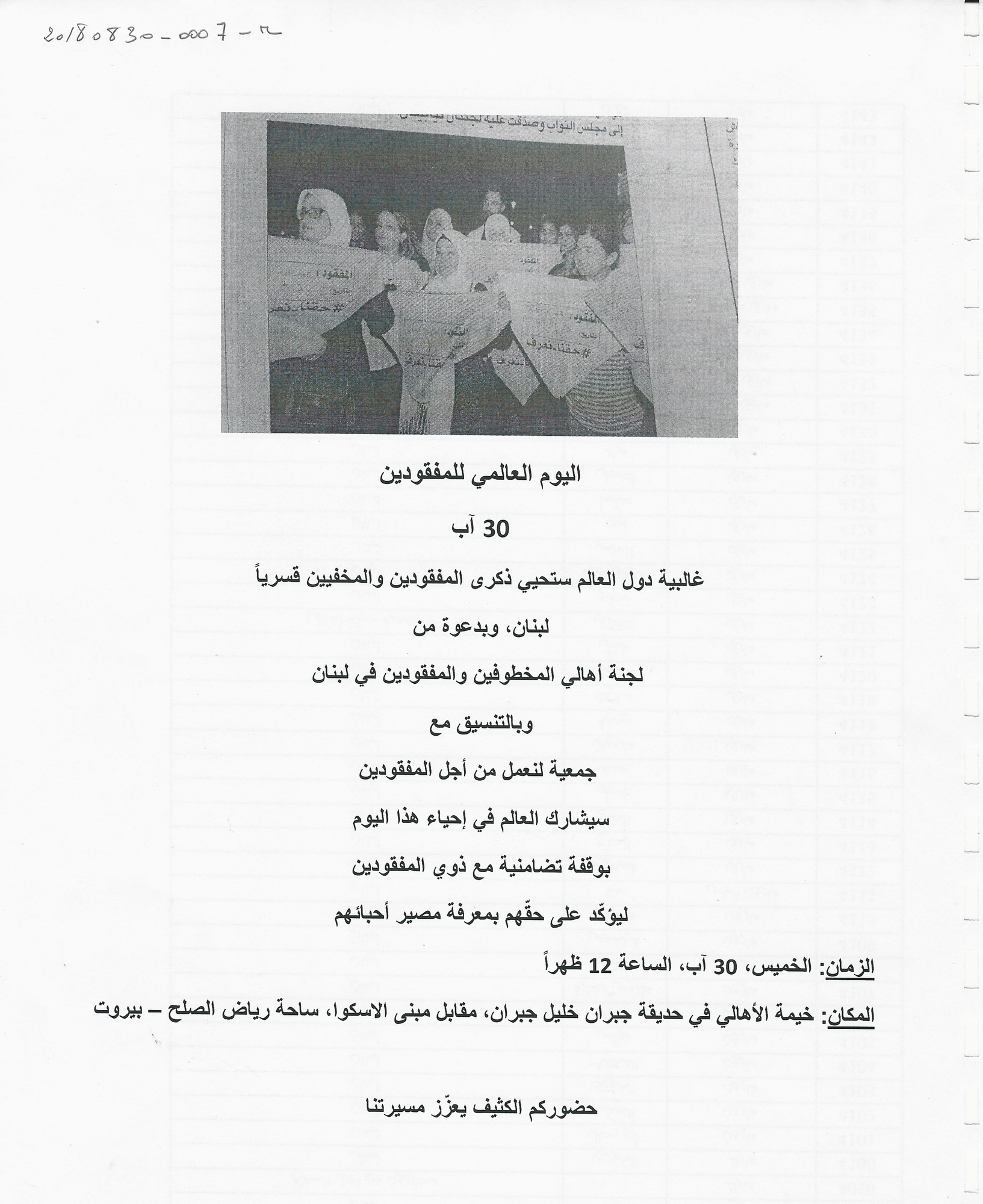 - ar دعوة الى وقفة تضامنية مع ذوي المفقودين بمناسبة اليوم العالمي للمفقودين