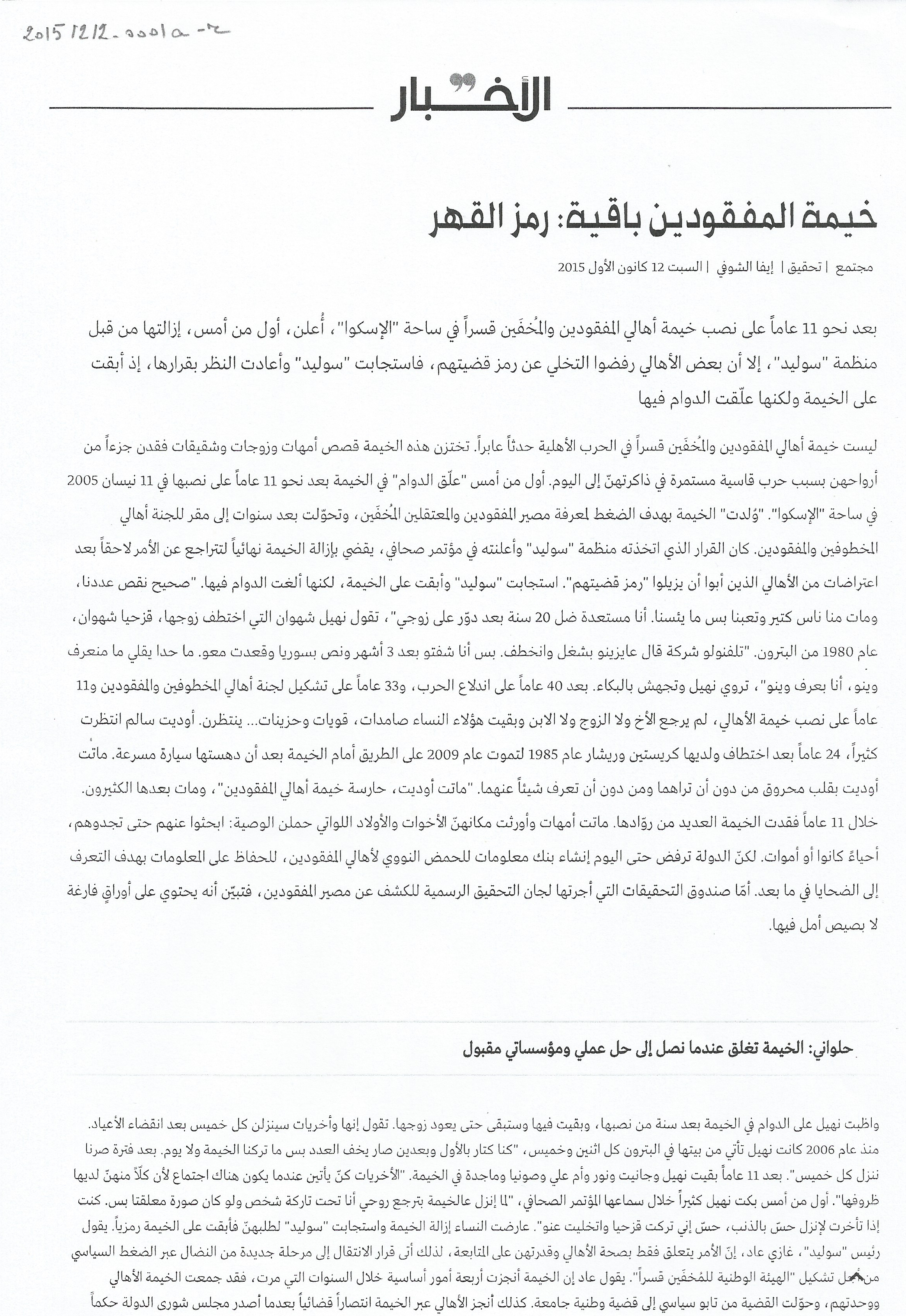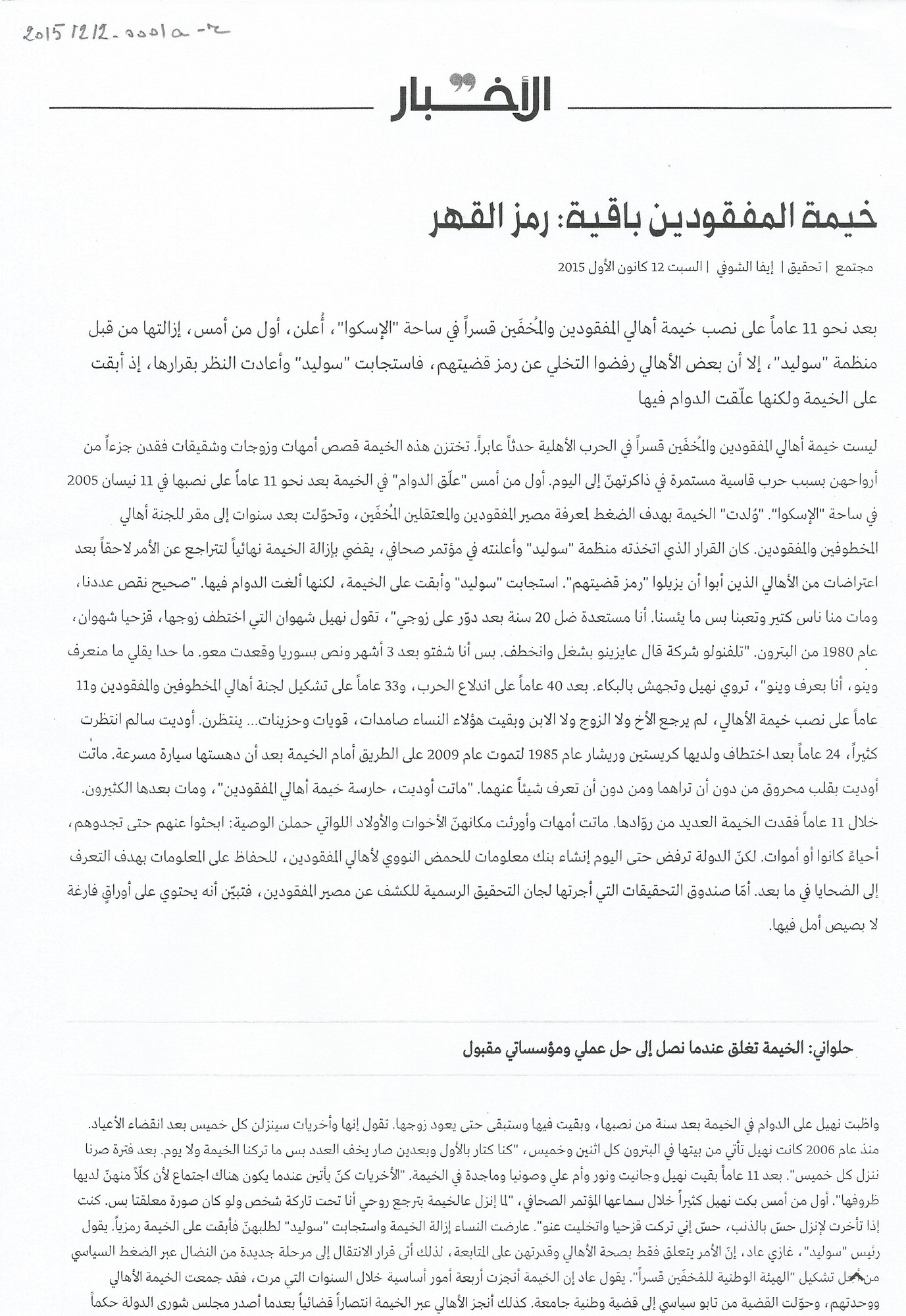 - خيمة اهالي المفقودين والمخفيين قسرياً، بيروت