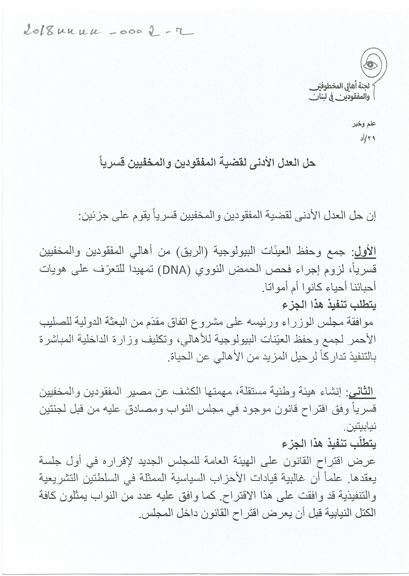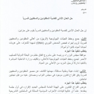- ar حل العدل الادنى لقضية المفقودين والمخفيين قسرا