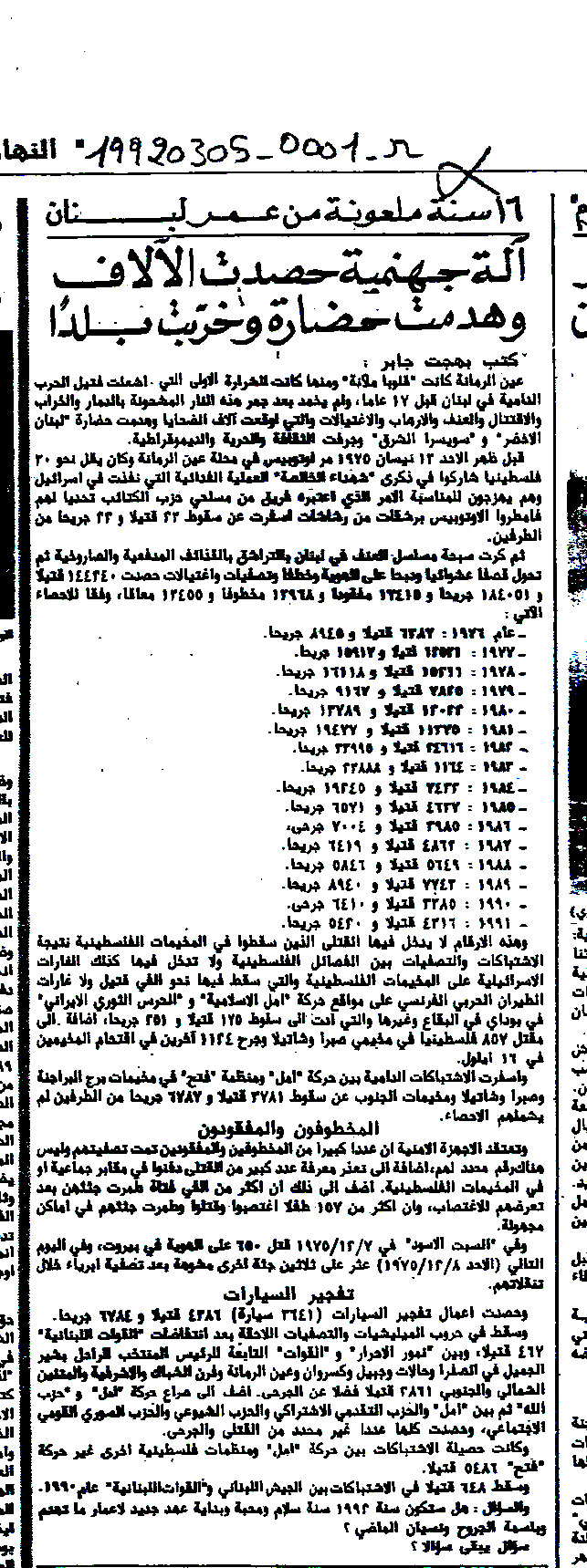 An infernal machine claimed the lives of thousands, destroyed an entire civilization and wreaked havoc in the nation: 16 cursed years in the history of Lebanon.