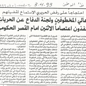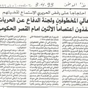 اهالي المخطوفين ولجنة الدفاع عن الحريات ينفذون اعتصاما الاثنين امام القصر الحكومي، احتجاجا على رفض الحريري الاستماع لقضيتهم