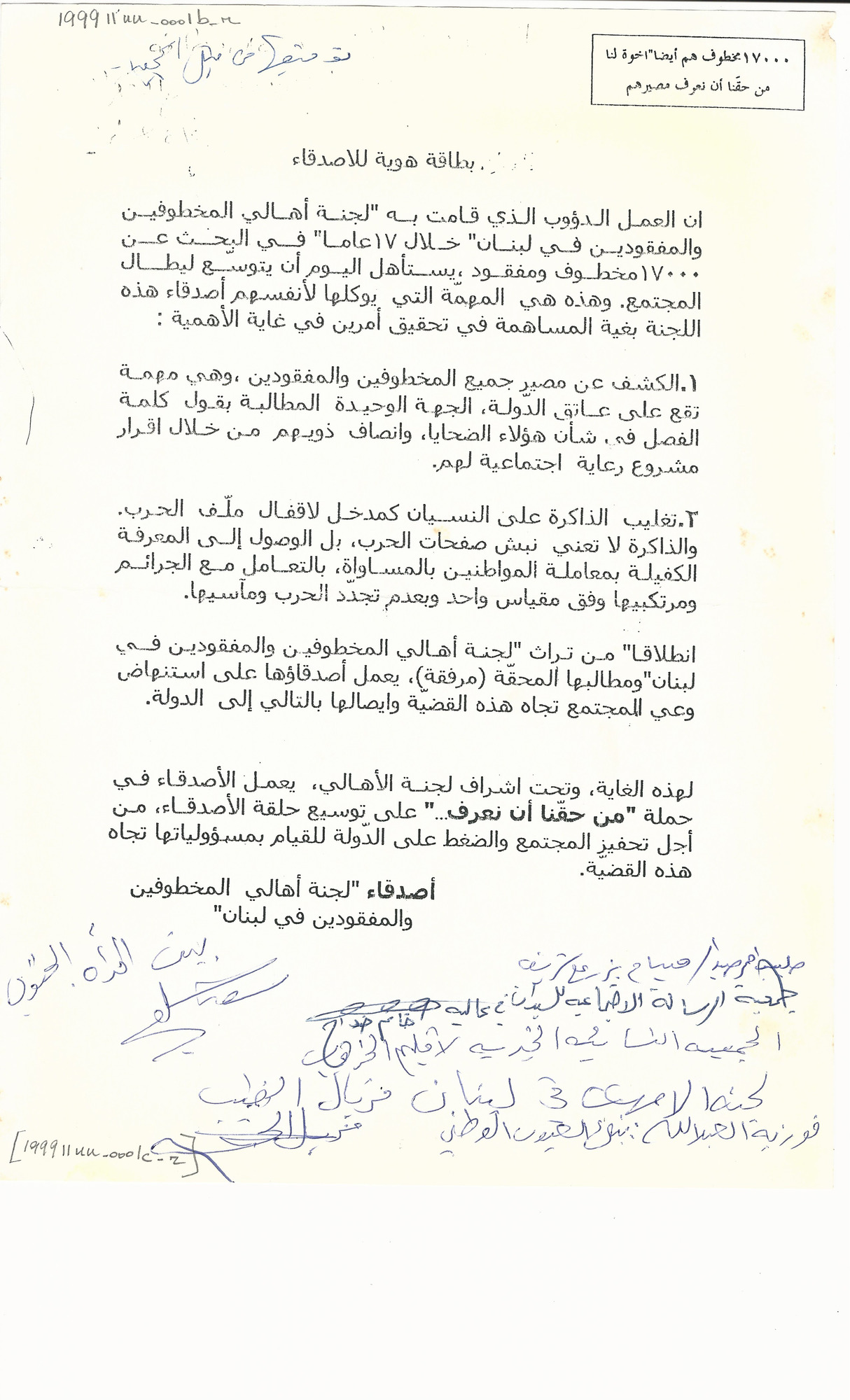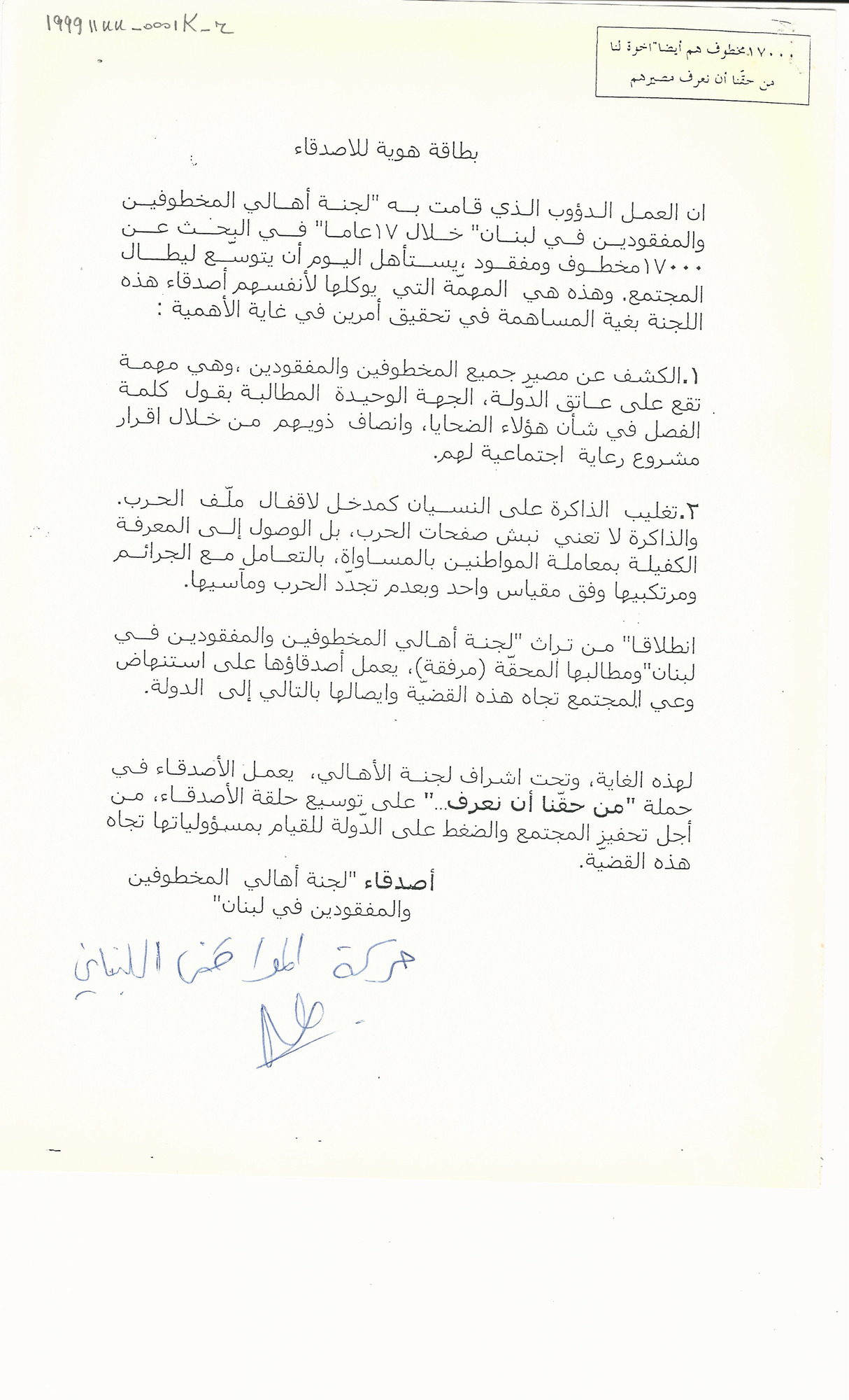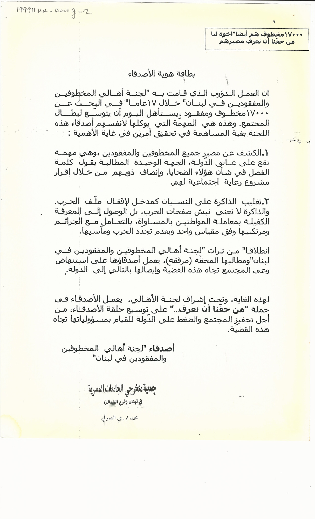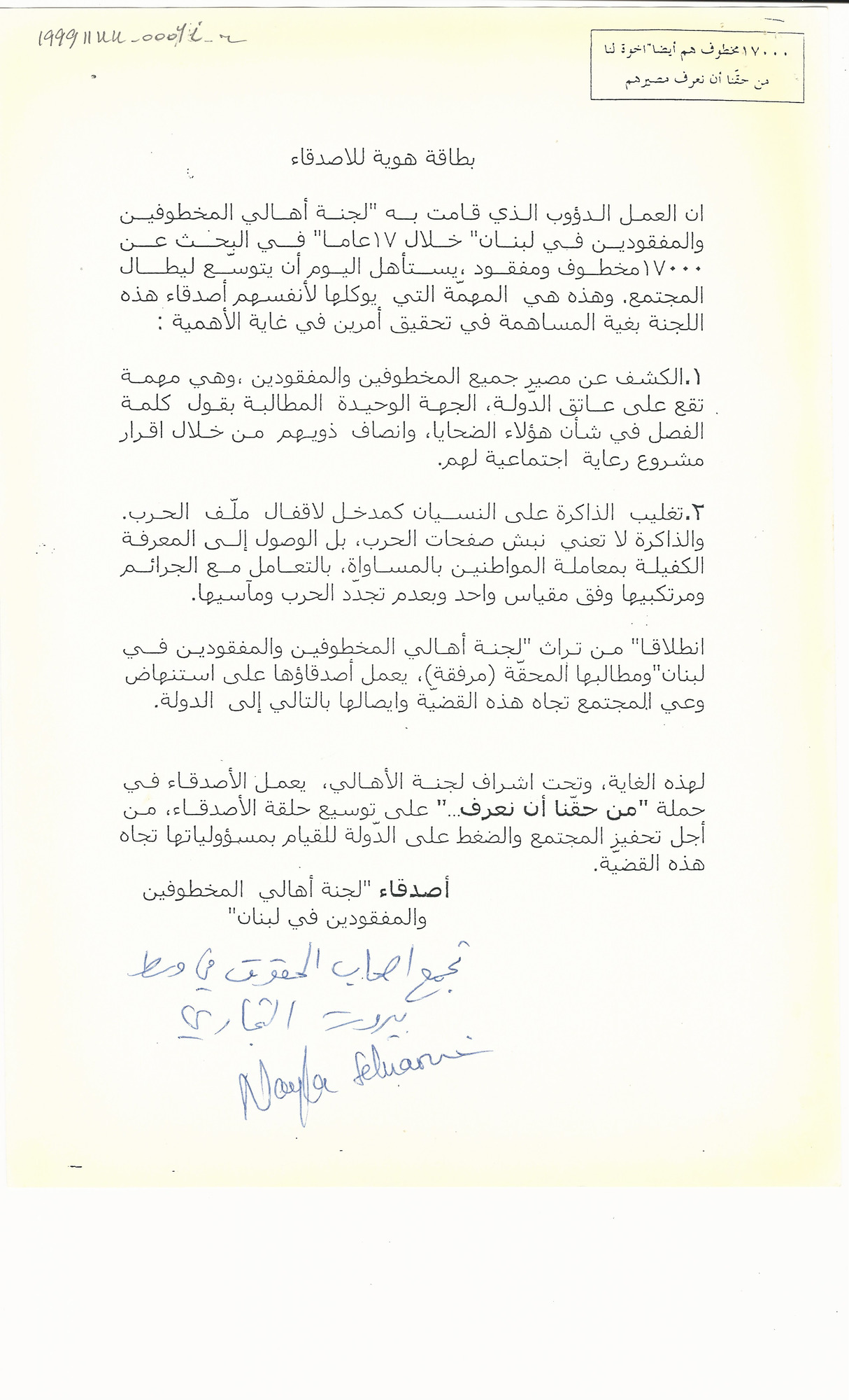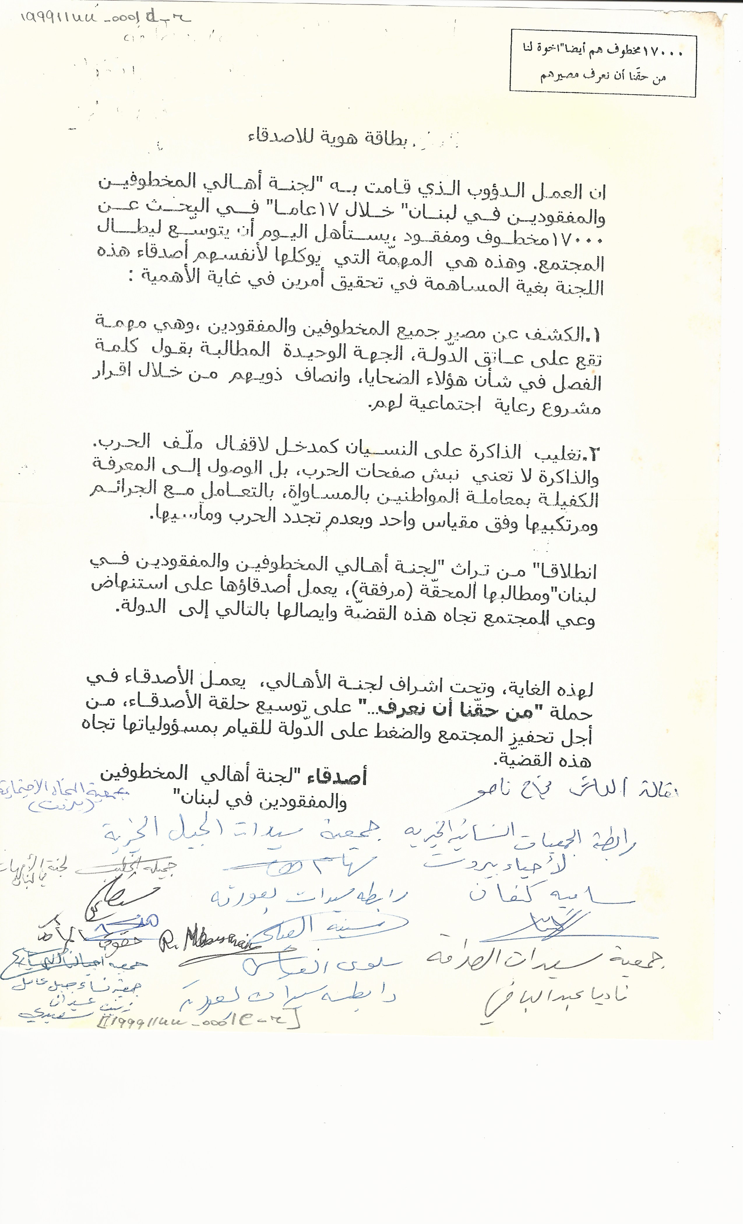 - اصدقاء لجنة اهالي المخطوفين والمفقودين في لبنان