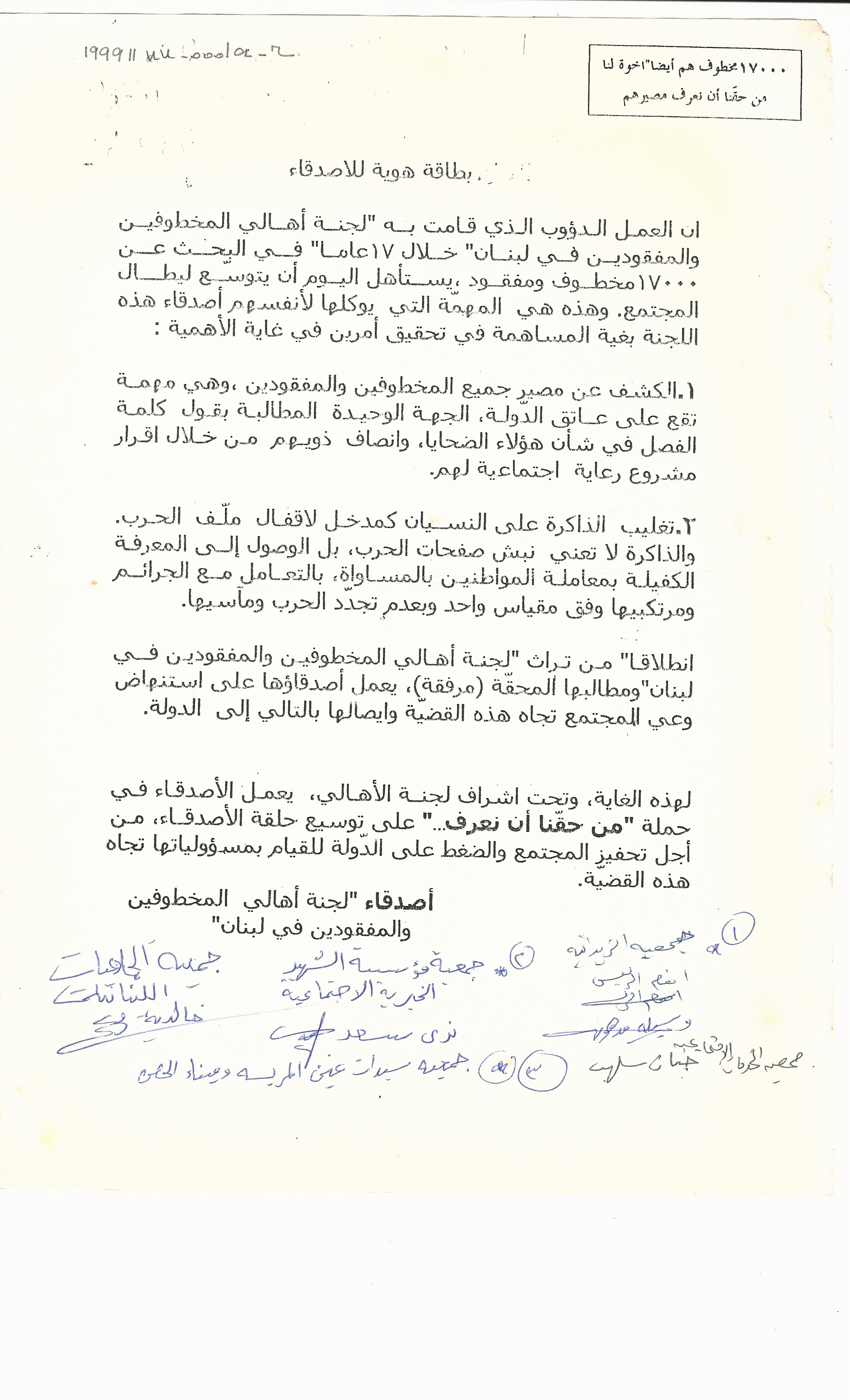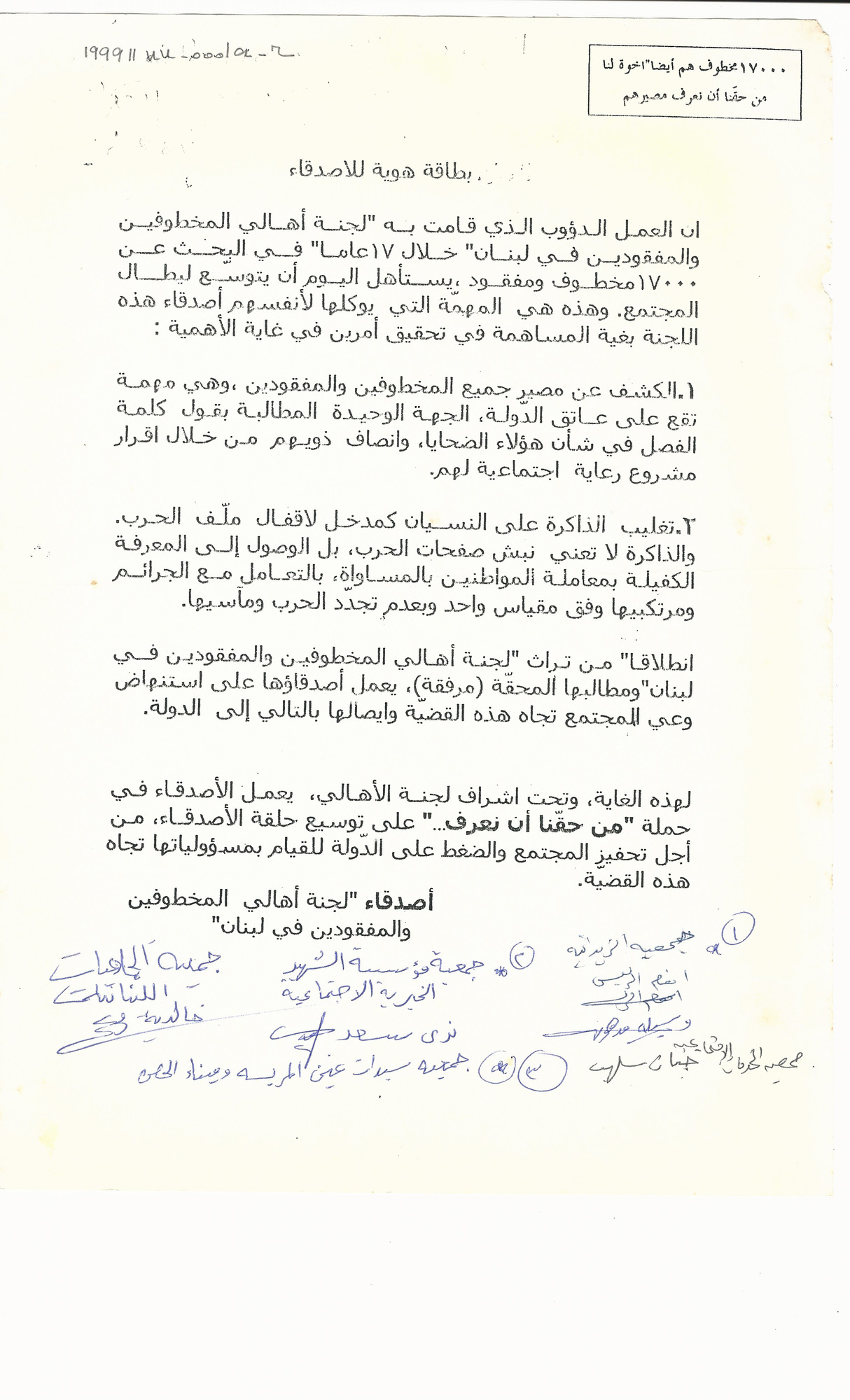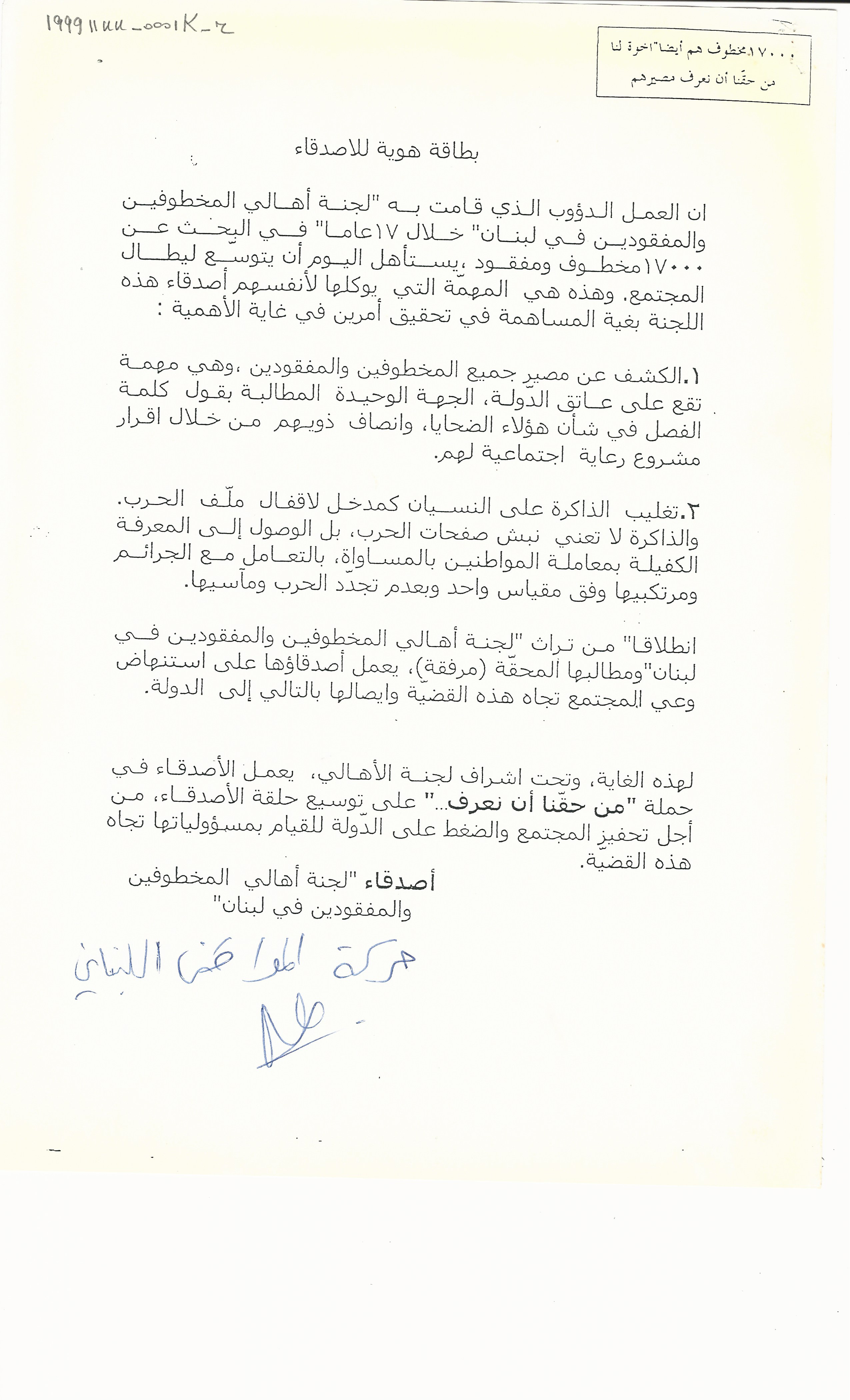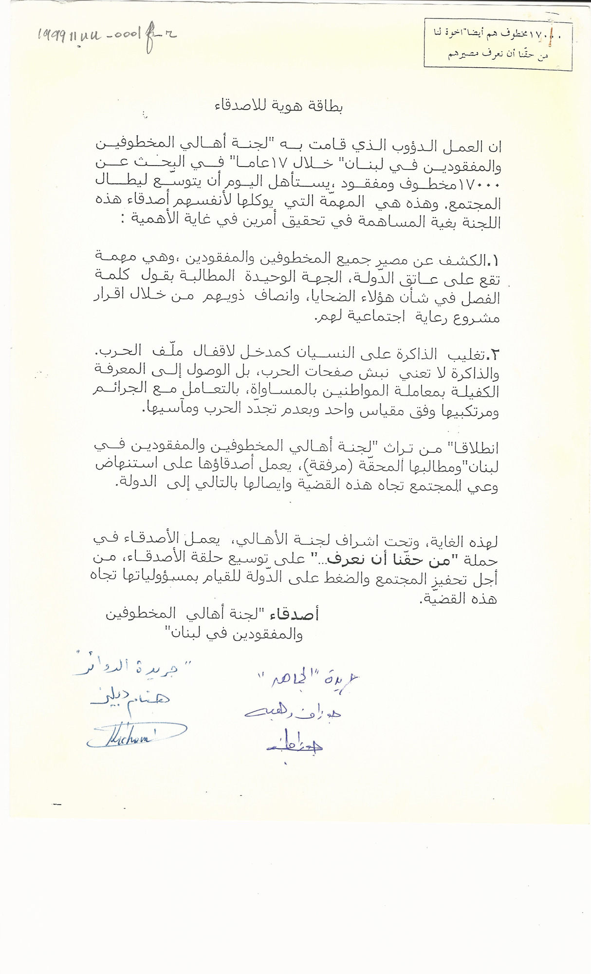 - اصدقاء لجنة اهالي المخطوفين والمفقودين في لبنان