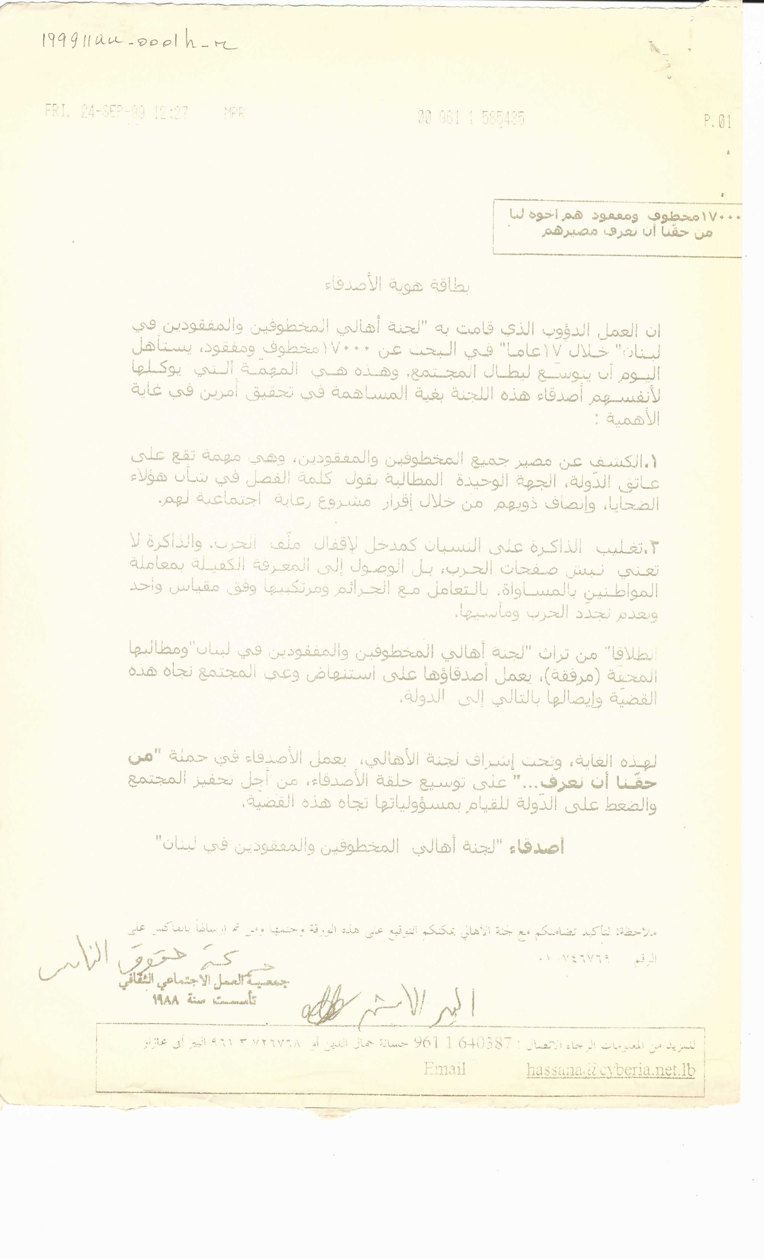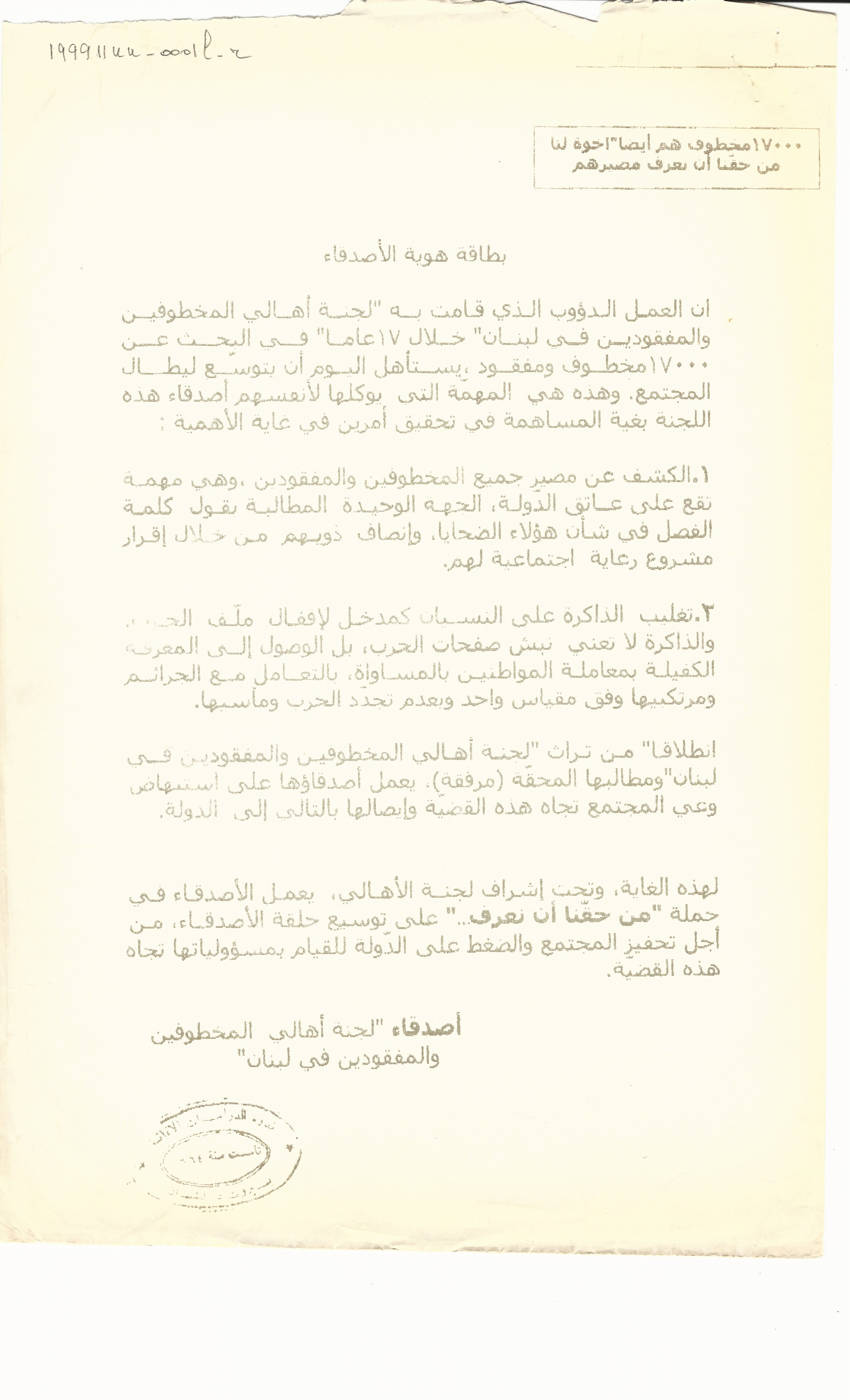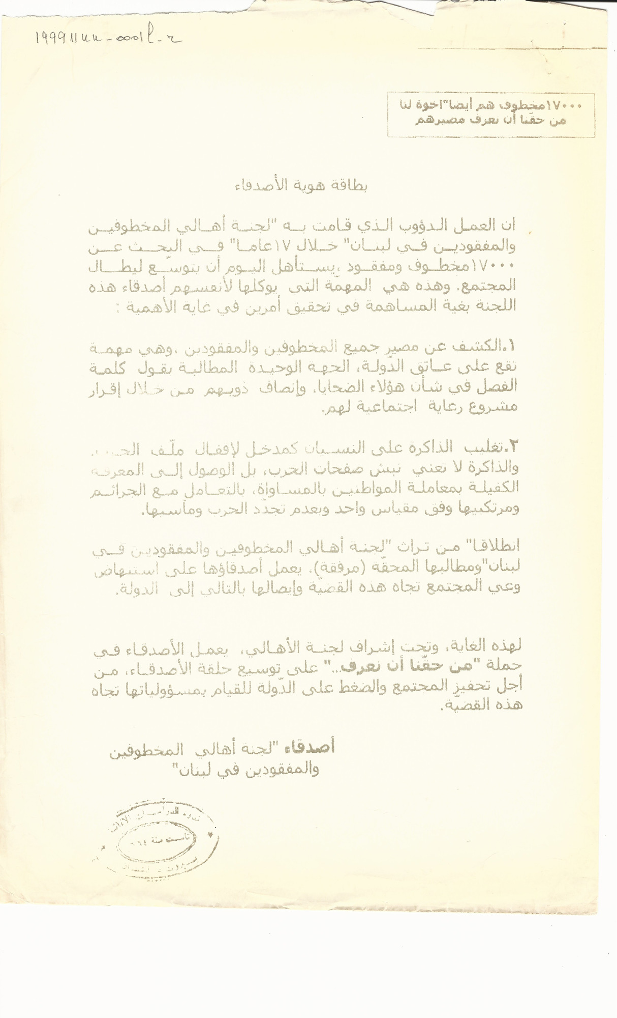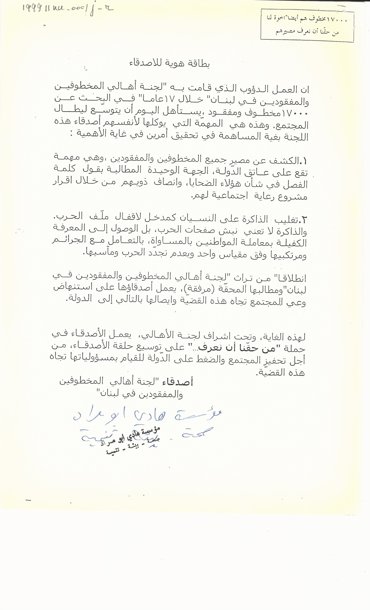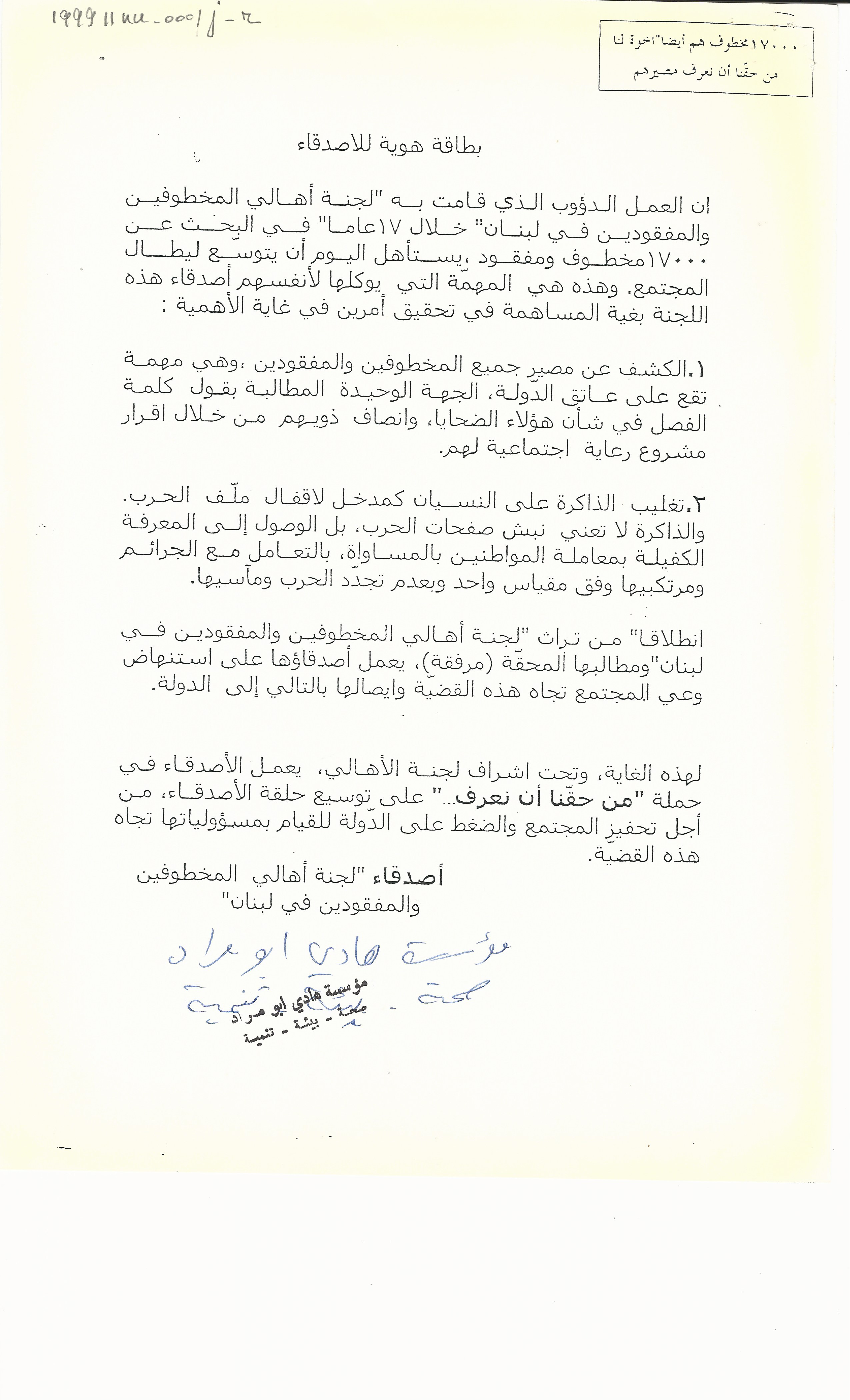 - اصدقاء لجنة اهالي المخطوفين والمفقودين في لبنان