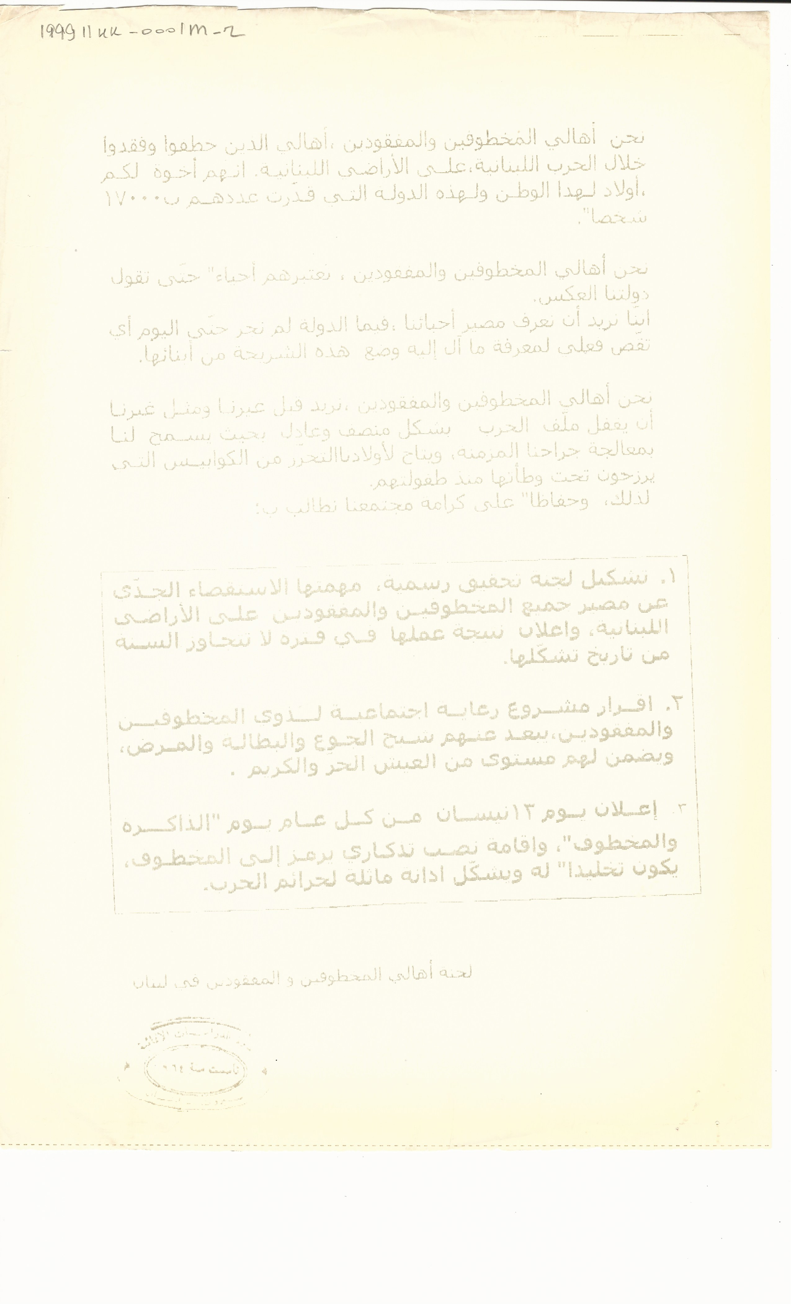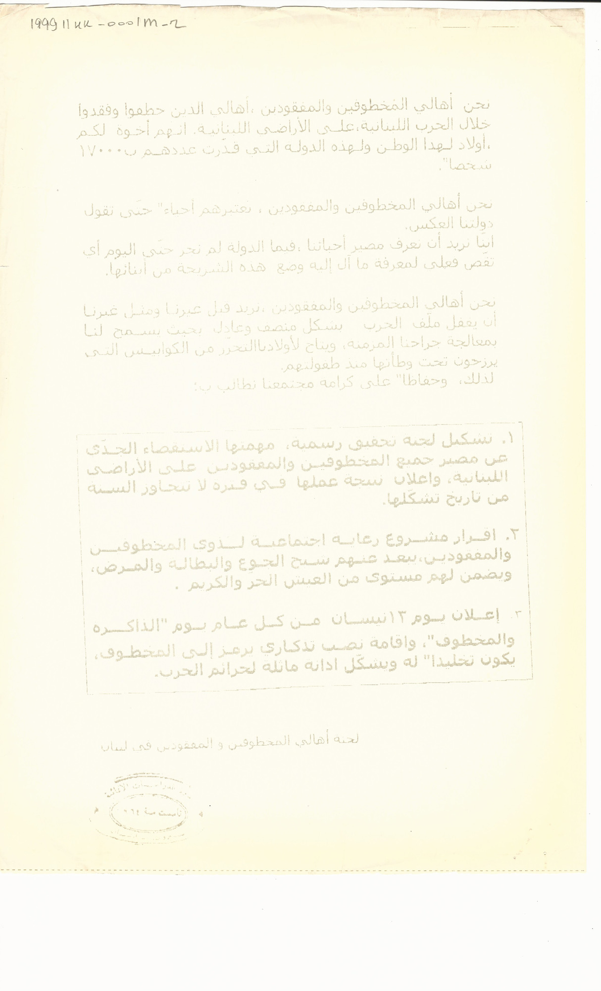 - لجنة اهالي المخطوفين والمفقودين في لبنان