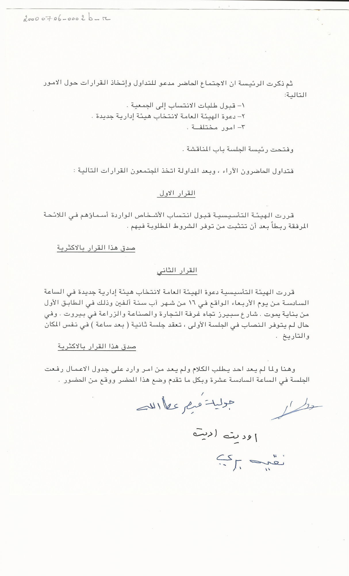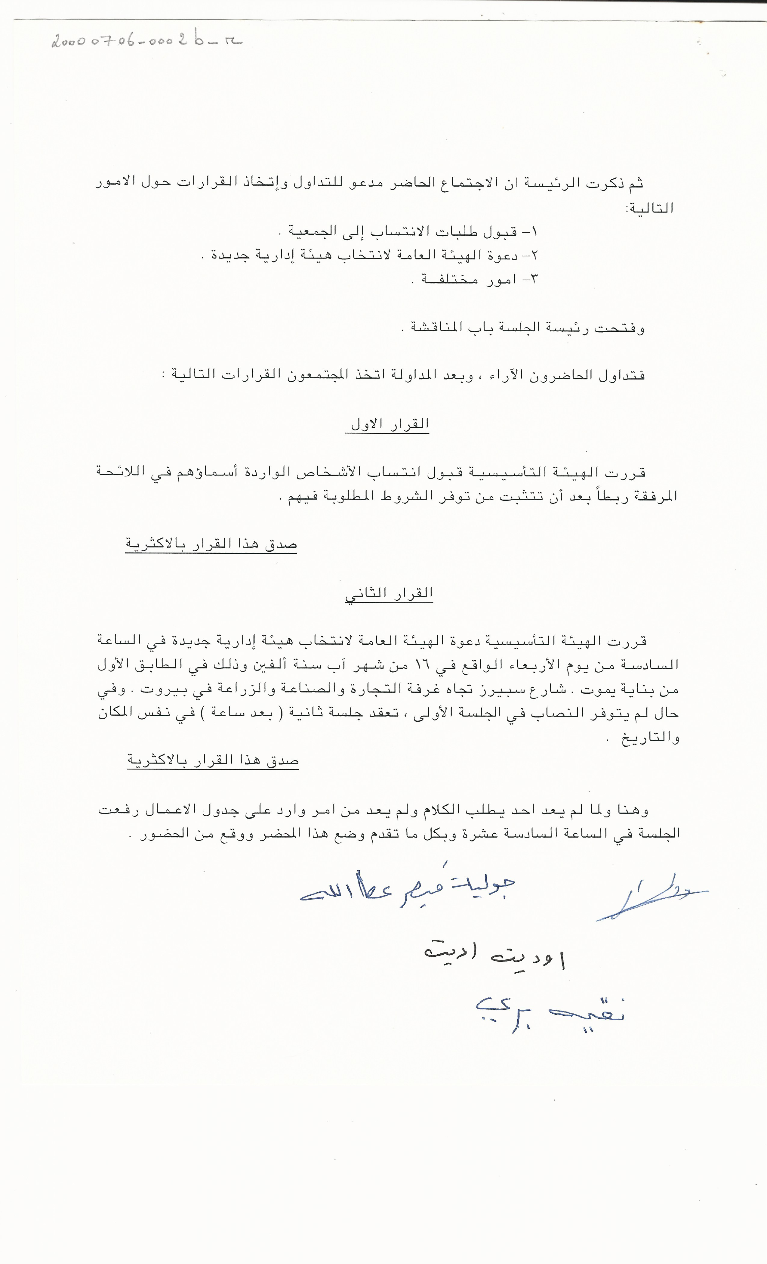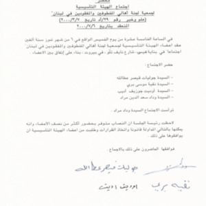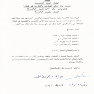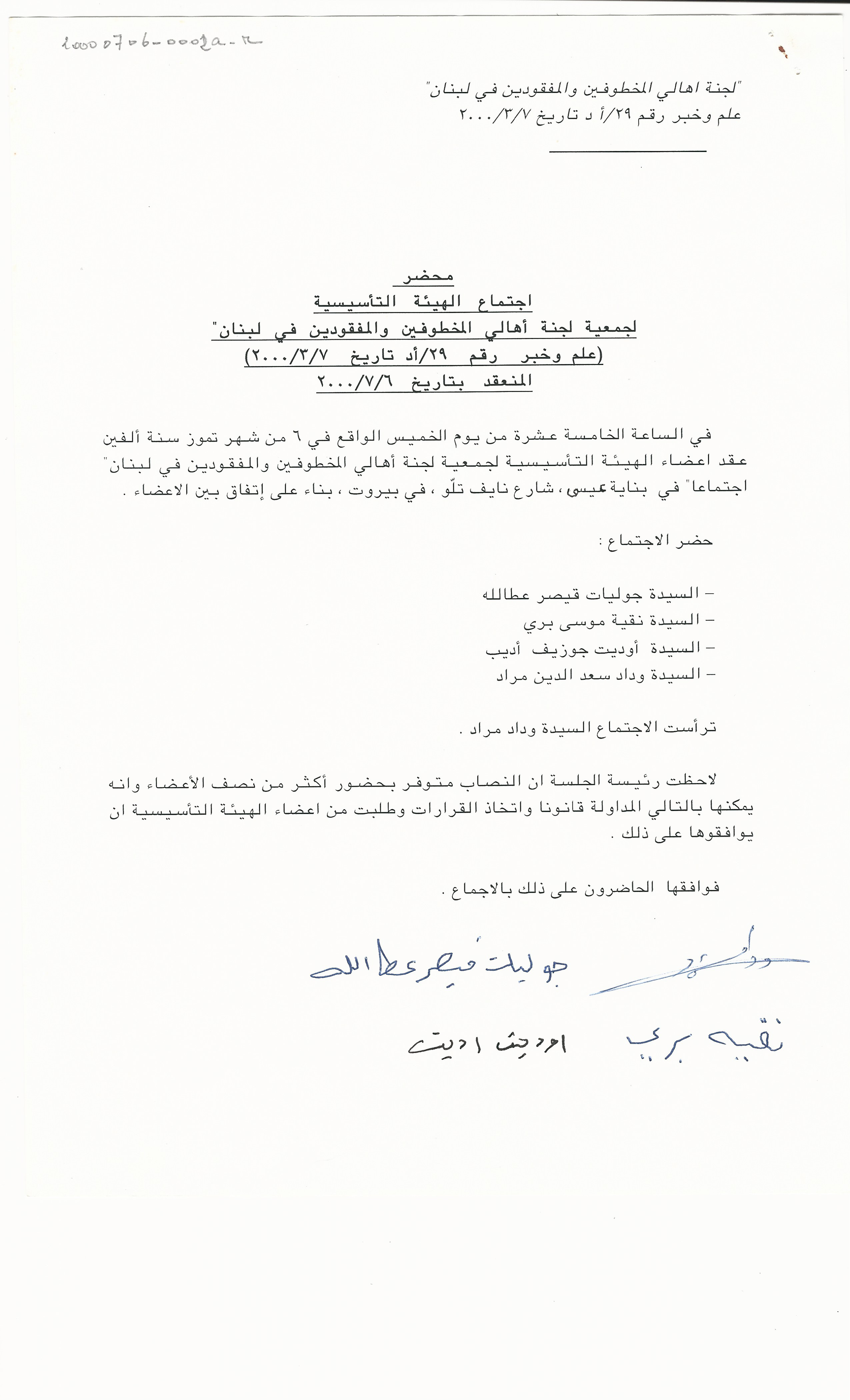 محضر اجتماع الهيئة التاسيسية لجمعية لجنة اهالي المخطوفين والمفقودين في لبنان