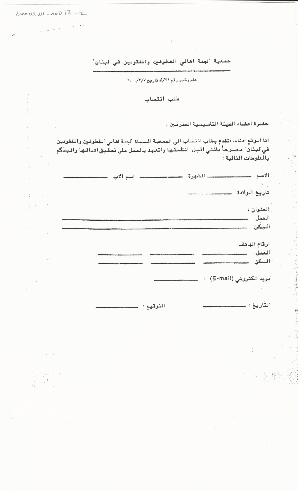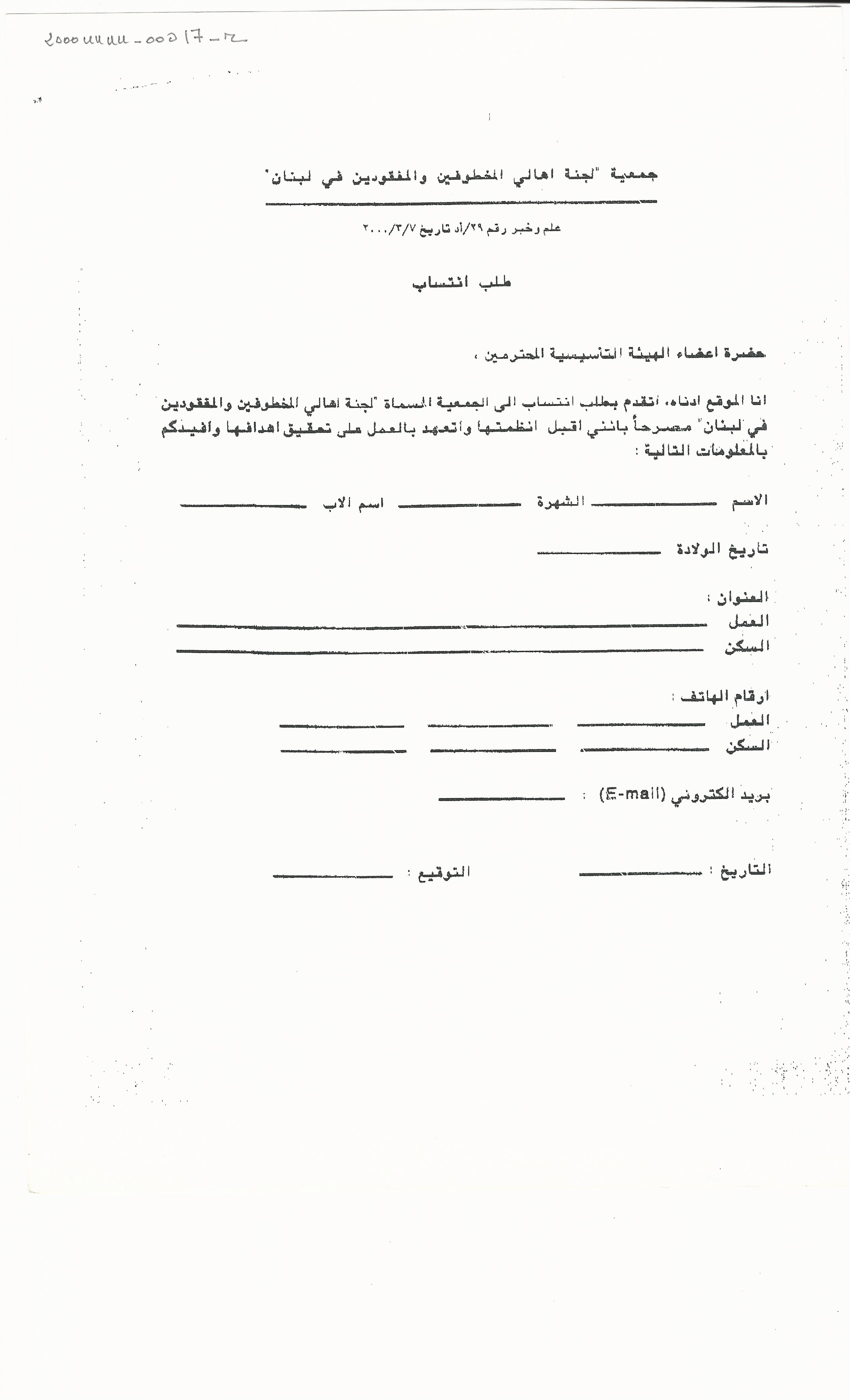 - ar نموذج طلب انتساب الى لجنة اهالي المخطوفين والمفقودين في لبنان