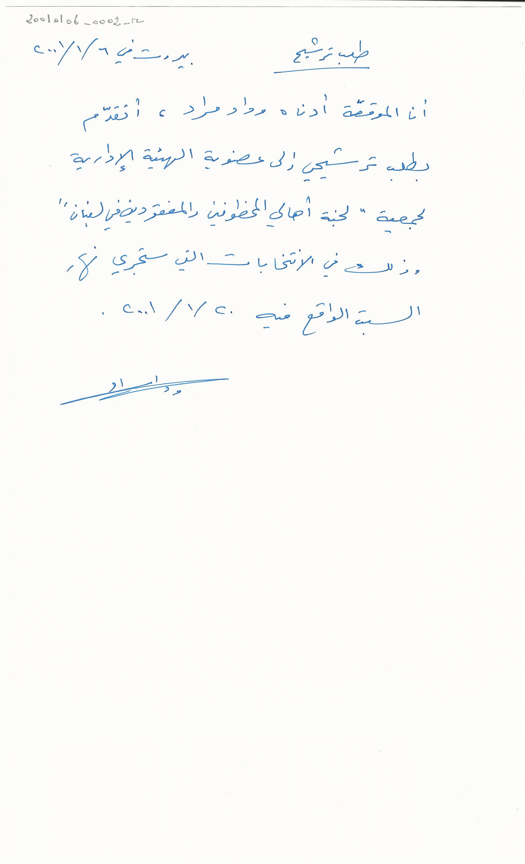 طلب ترشيح الى عضوية الهيئة الادارية للجنة اهالي المخطوفين والمفقودين