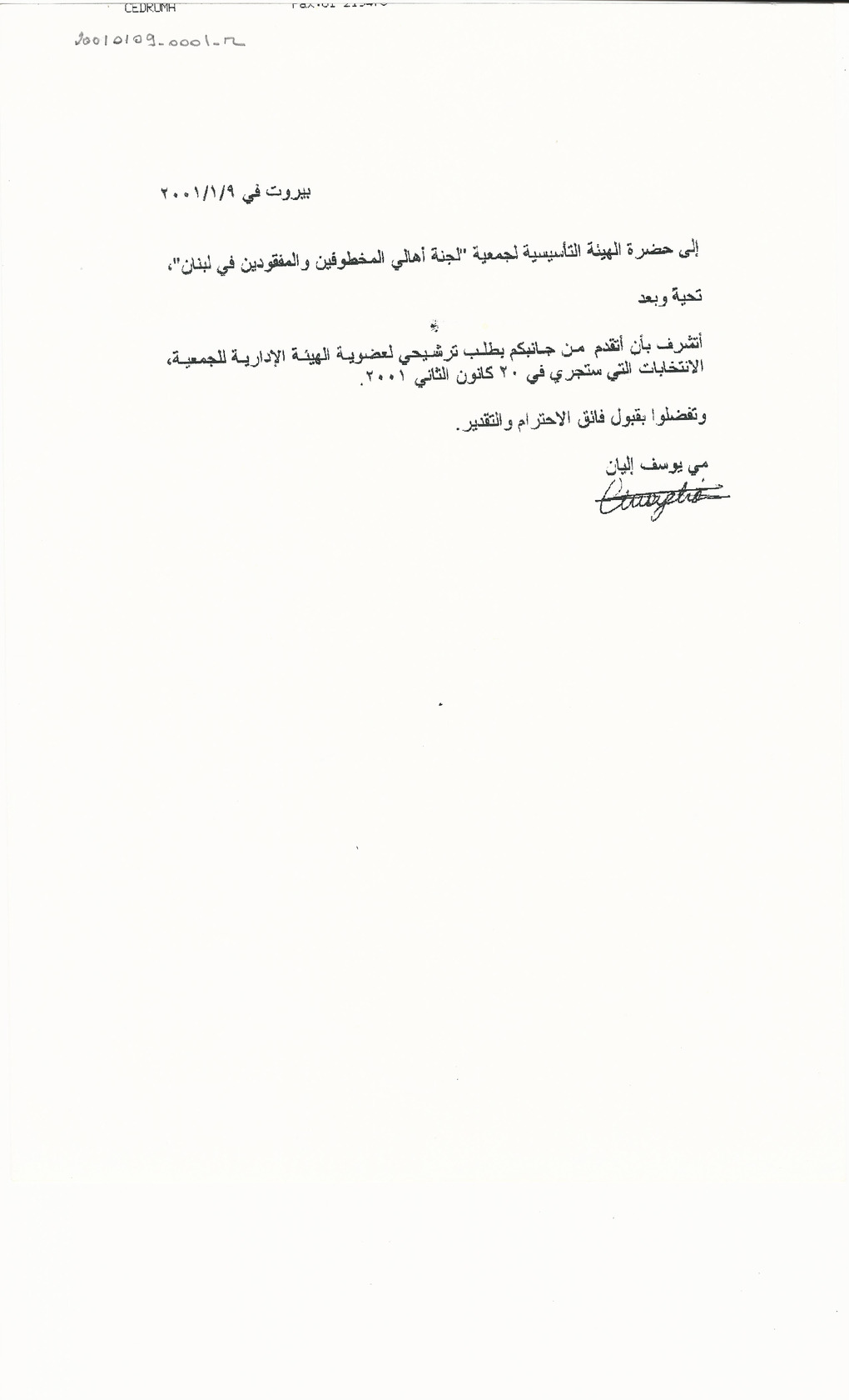 - ar طلب ترشيح لعضوية الهيئة الادارية للجنة اهالي المخطوفين والمفقودين في لبنان
