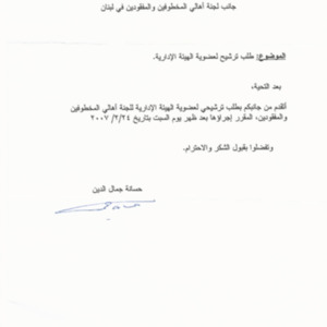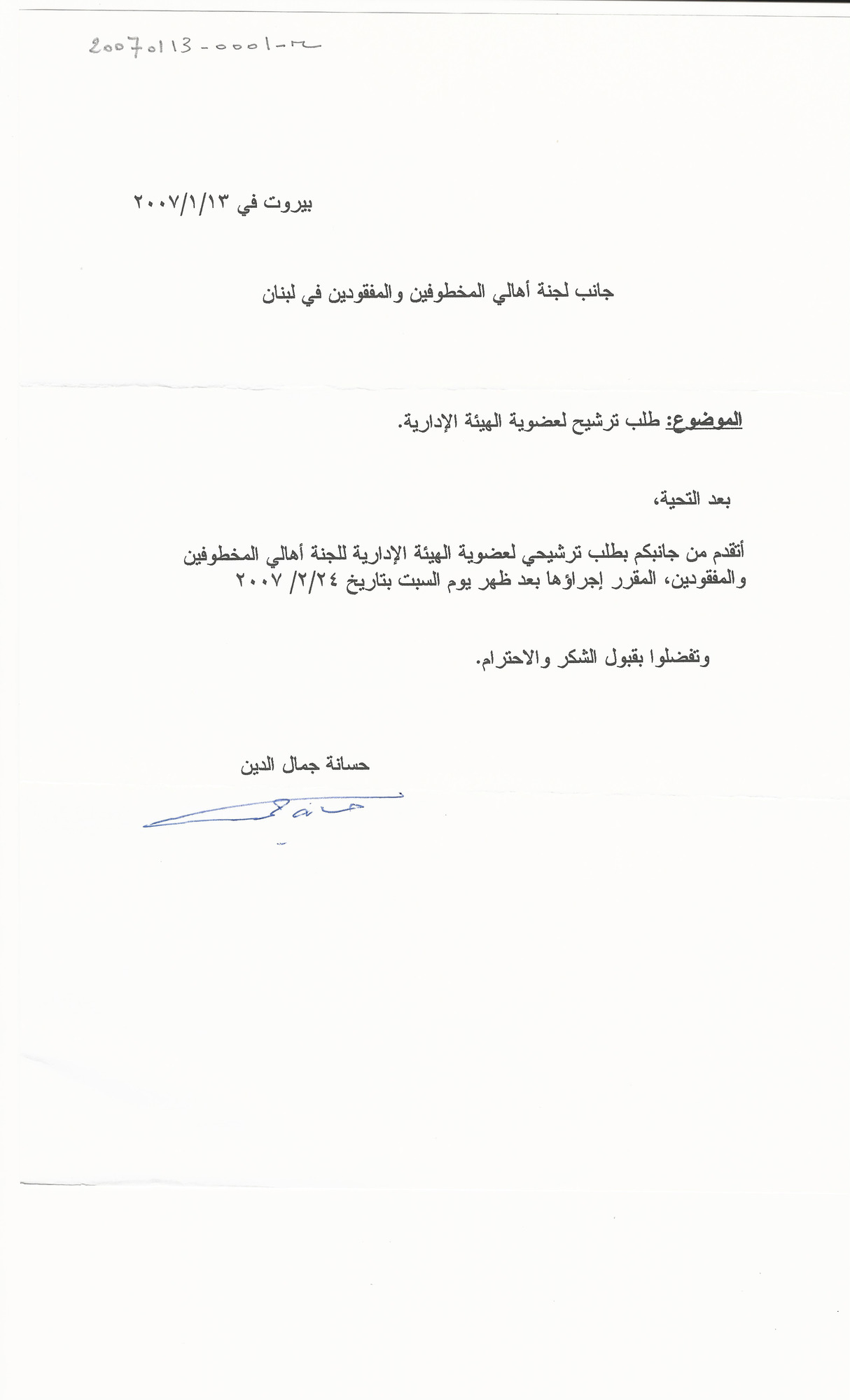 طلب ترشيح لعضوية الهيئة الادارية للجنة اهالي المخطوفين والمفقودين في لبنان