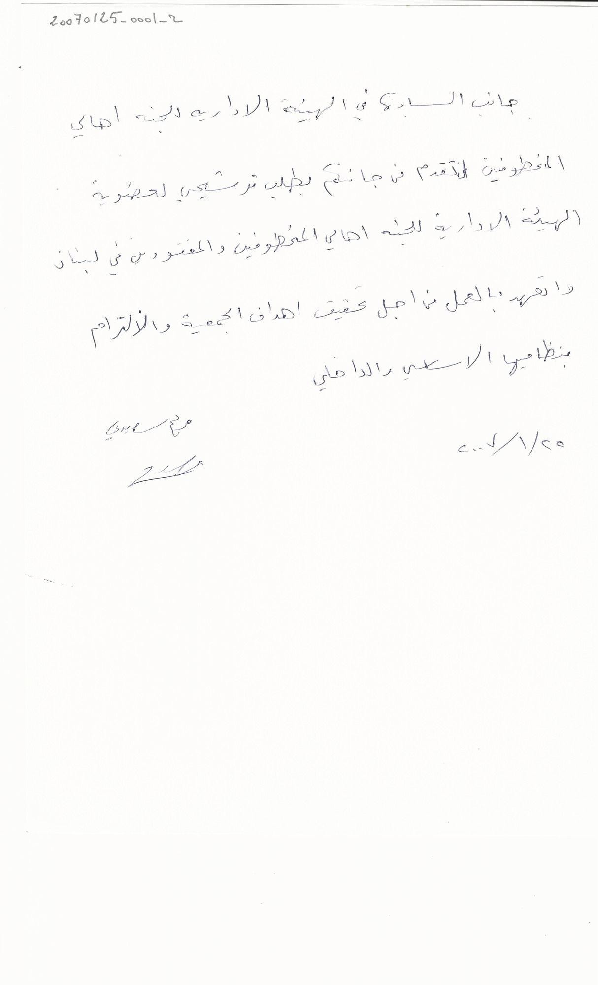 - ar طلب ترشيح لعضوية الهيئة الادارية للجنة اهالي المخطوفين والمفقودين في لبنان