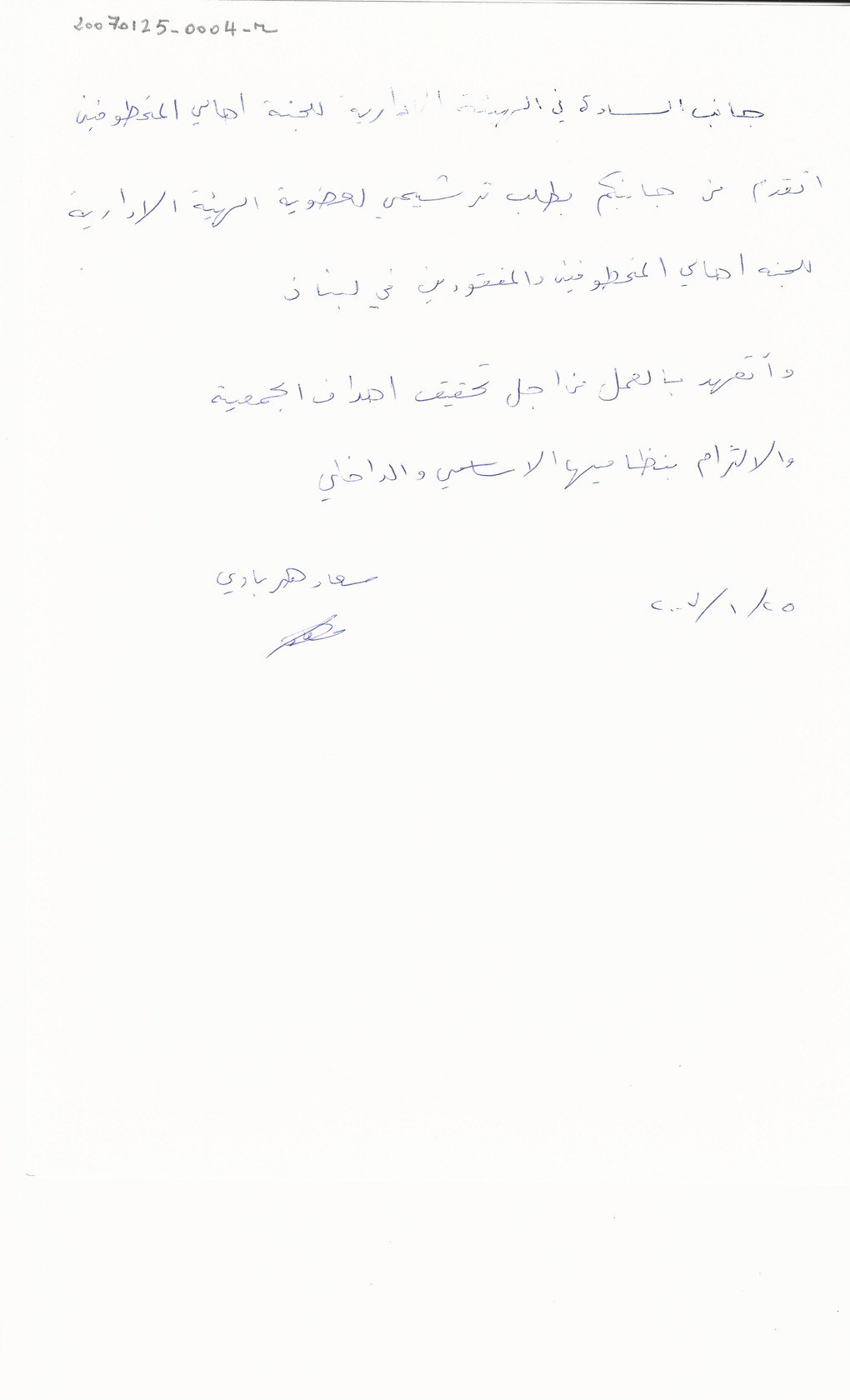 - ar طلب ترشيح لعضوية الهيئة الادارية للجنة اهالي المخطوفين والمفقودين في لبنان