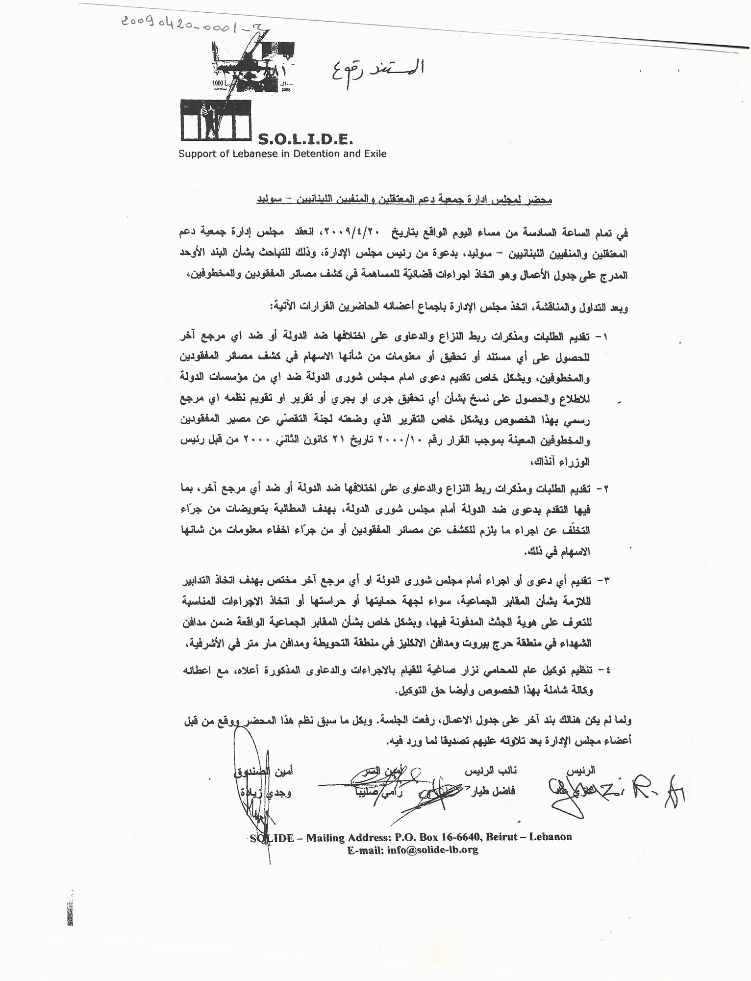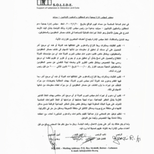محضر لمجلس ادارة جمعية دعم المعتقلين والمنفيين اللبنانيين سوليد