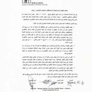 Minutes of the meeting of the board of directors of the organization of the Support of Lebanese in Detention and Exile (SOLIDE)