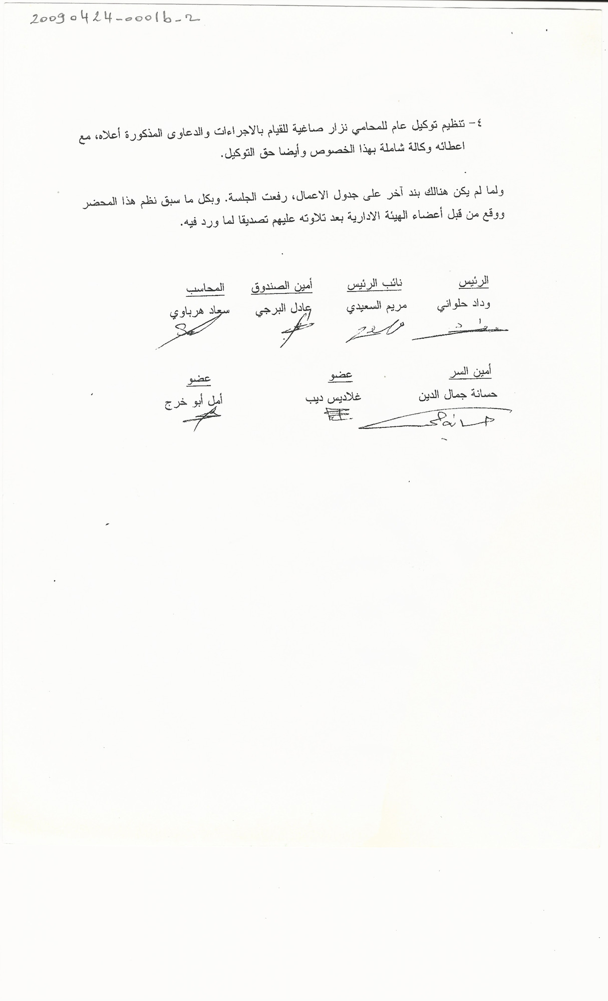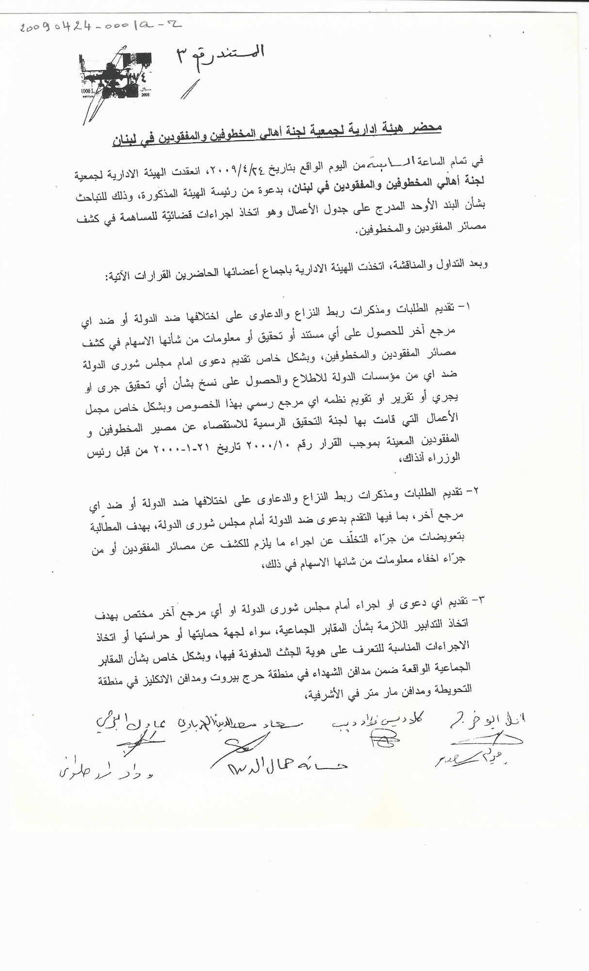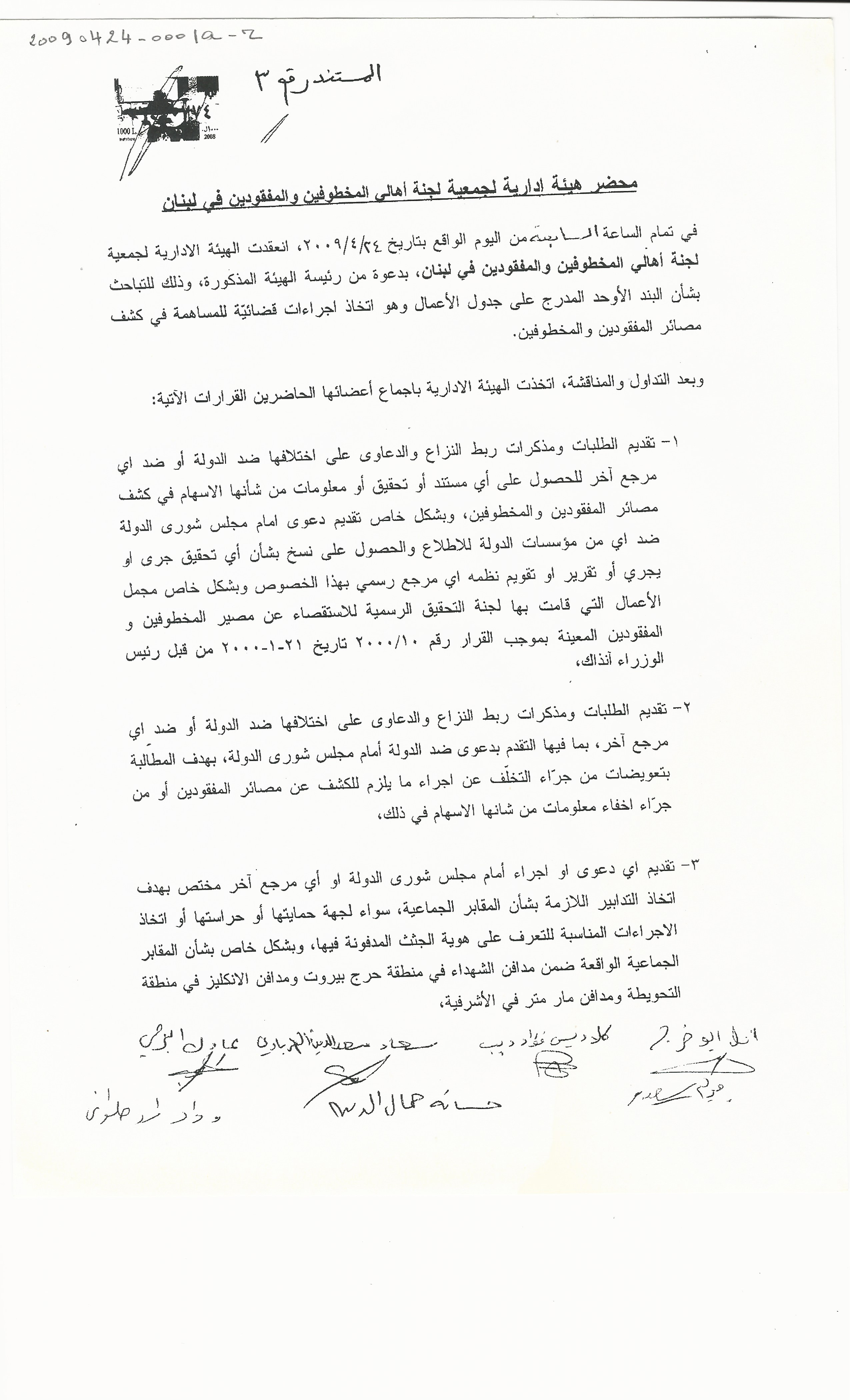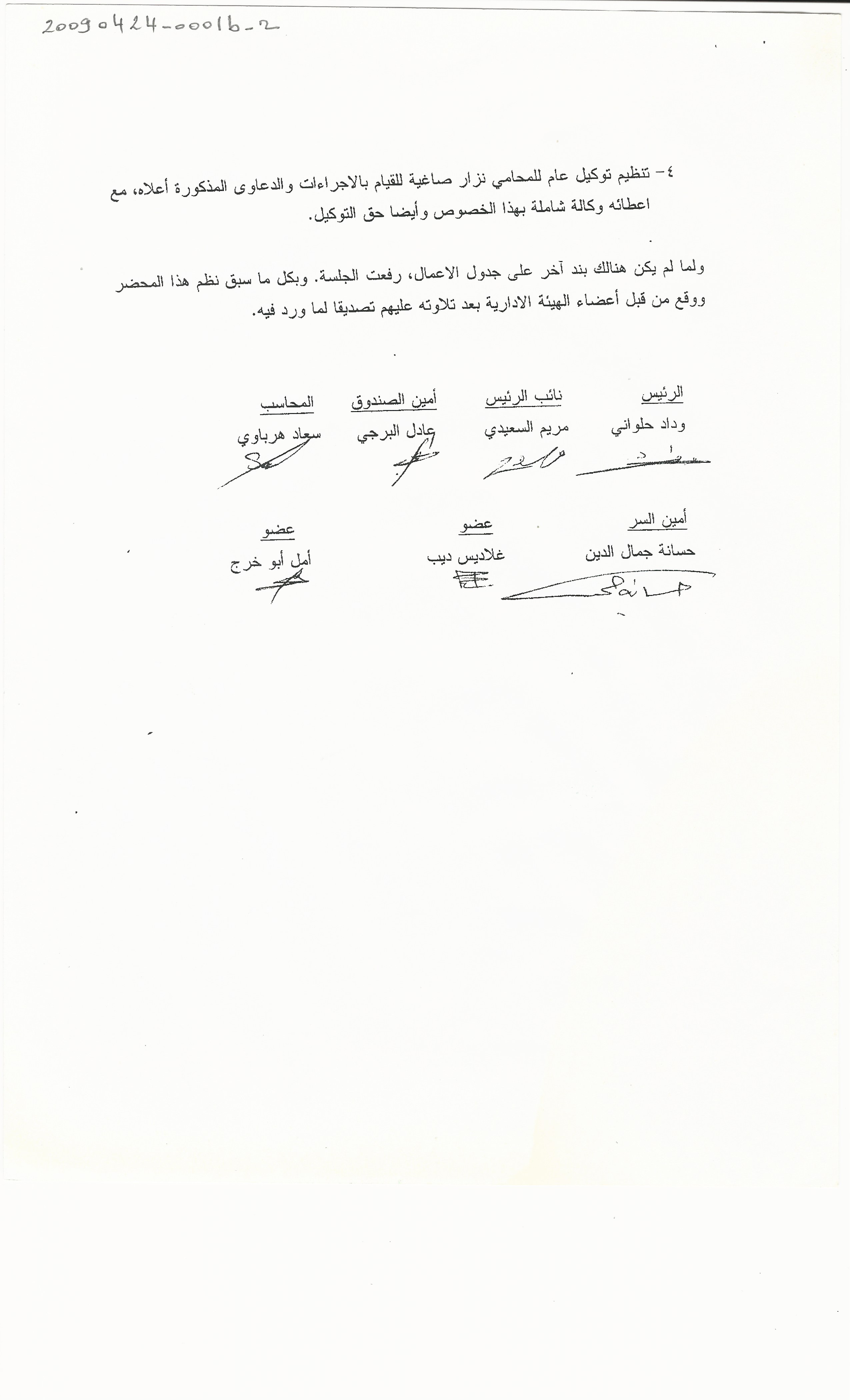 - ar محضر اجتماع الهيئة الادارية للجنة الاهالي :الجمعة، 24، 4، 2009