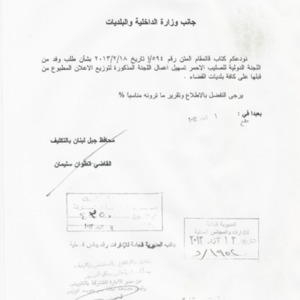 To the Ministry of Interior and Municipalities