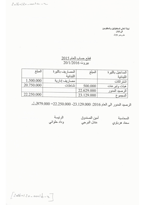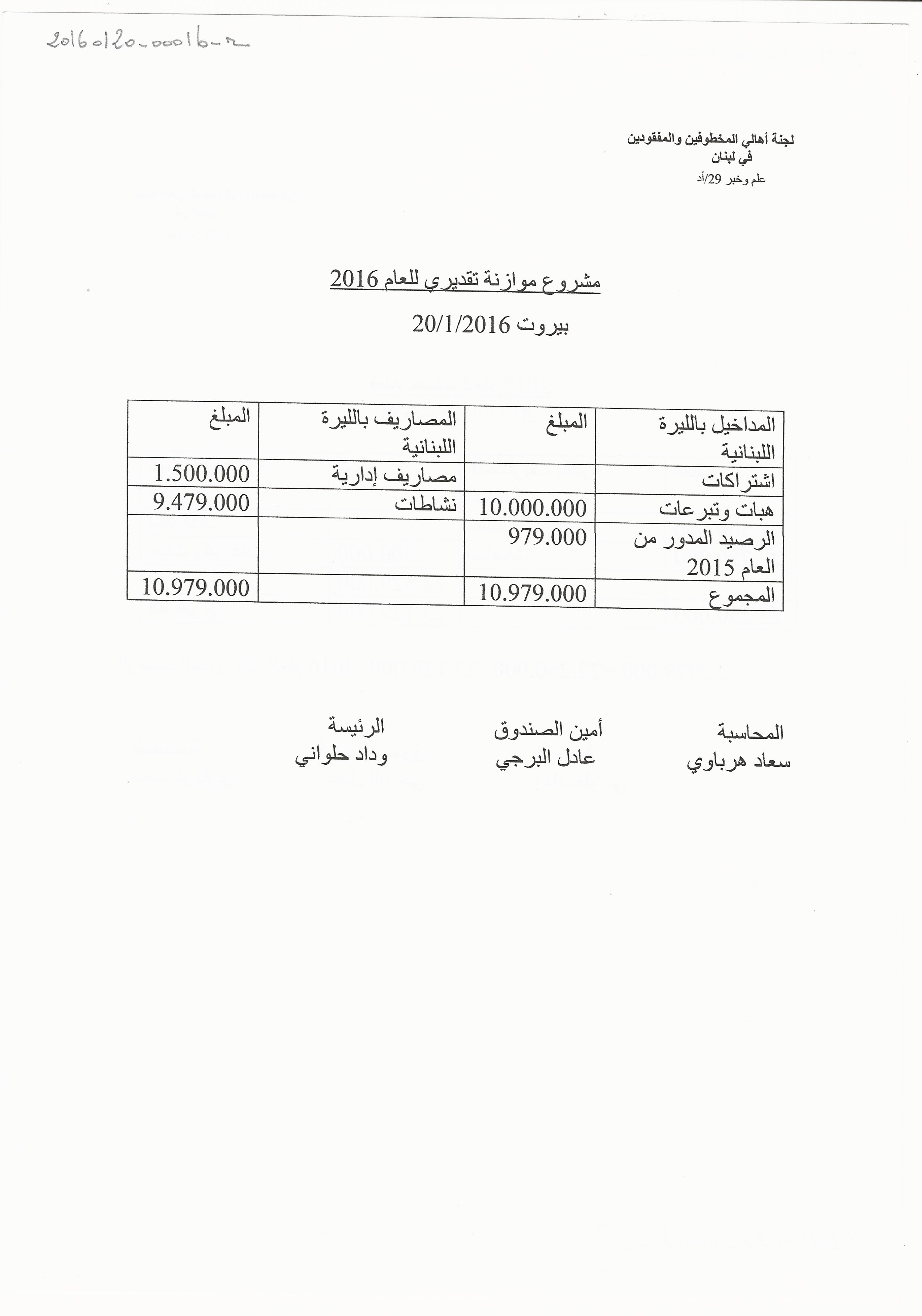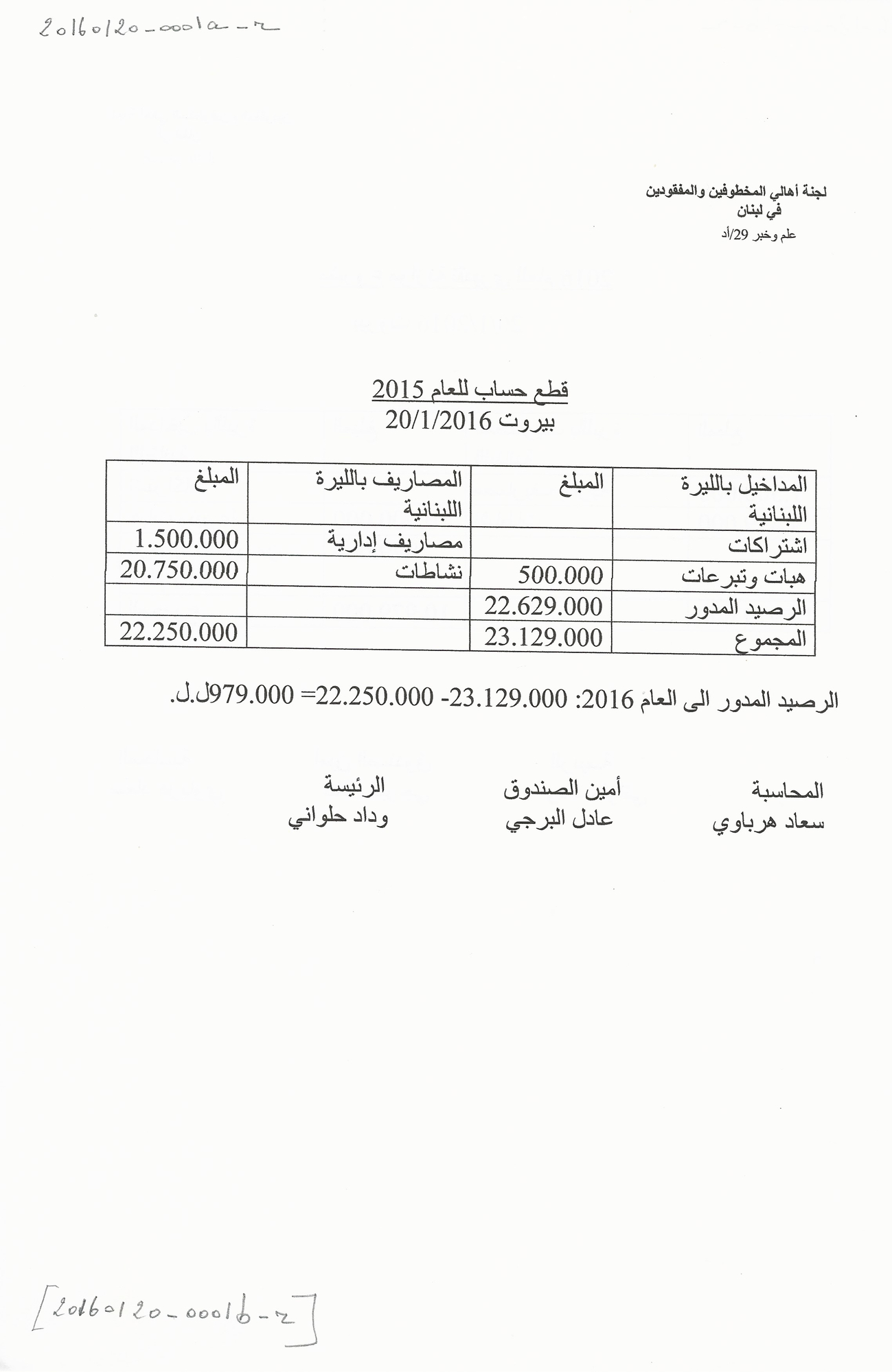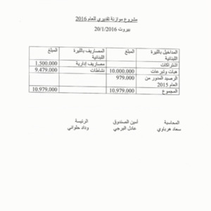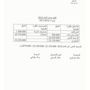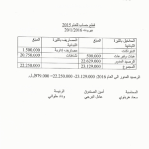 - ar قطع حساب للعام، 2015، ومشروع موازنة العام، 2016