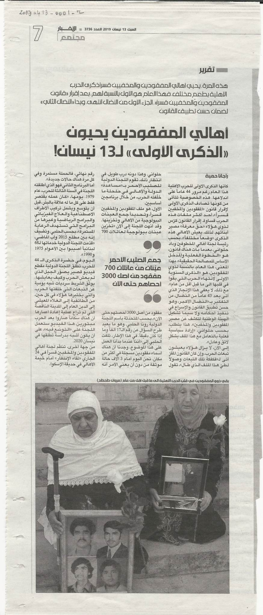 اهالي المفقودين يحيون الذكرى الاولى لـ 13 نيسان
