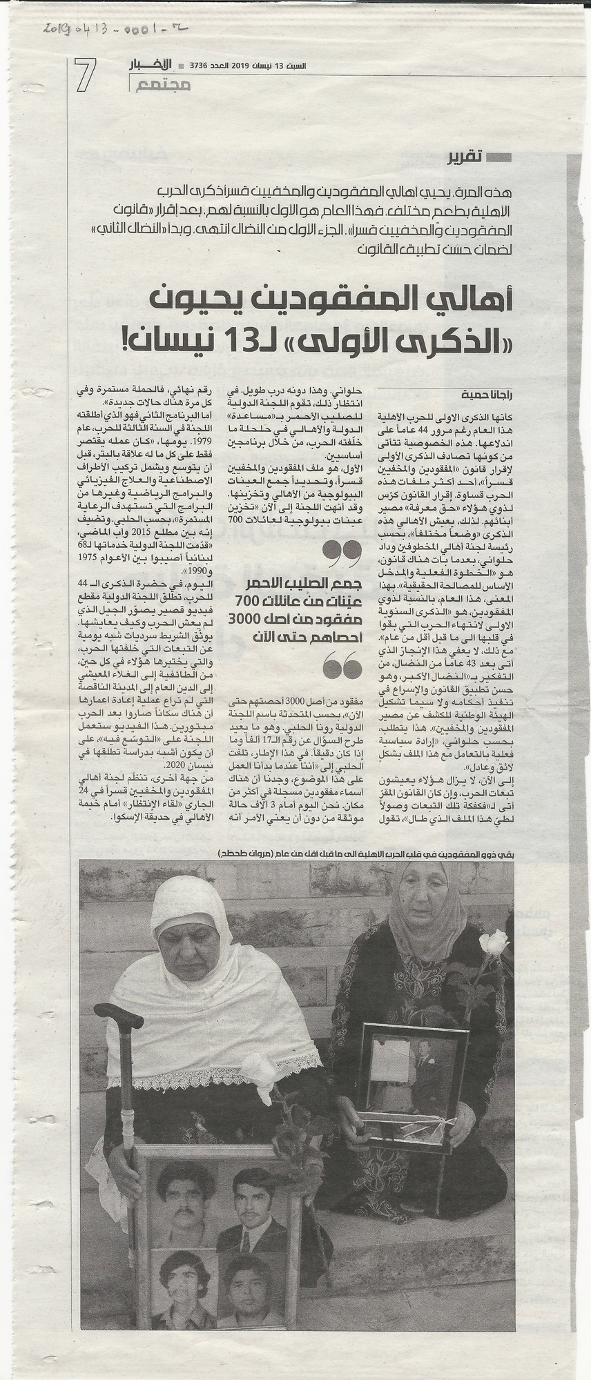 - ar اهالي المفقودين يحيون الذكرى الاولى لـ 13 نيسان