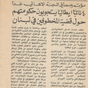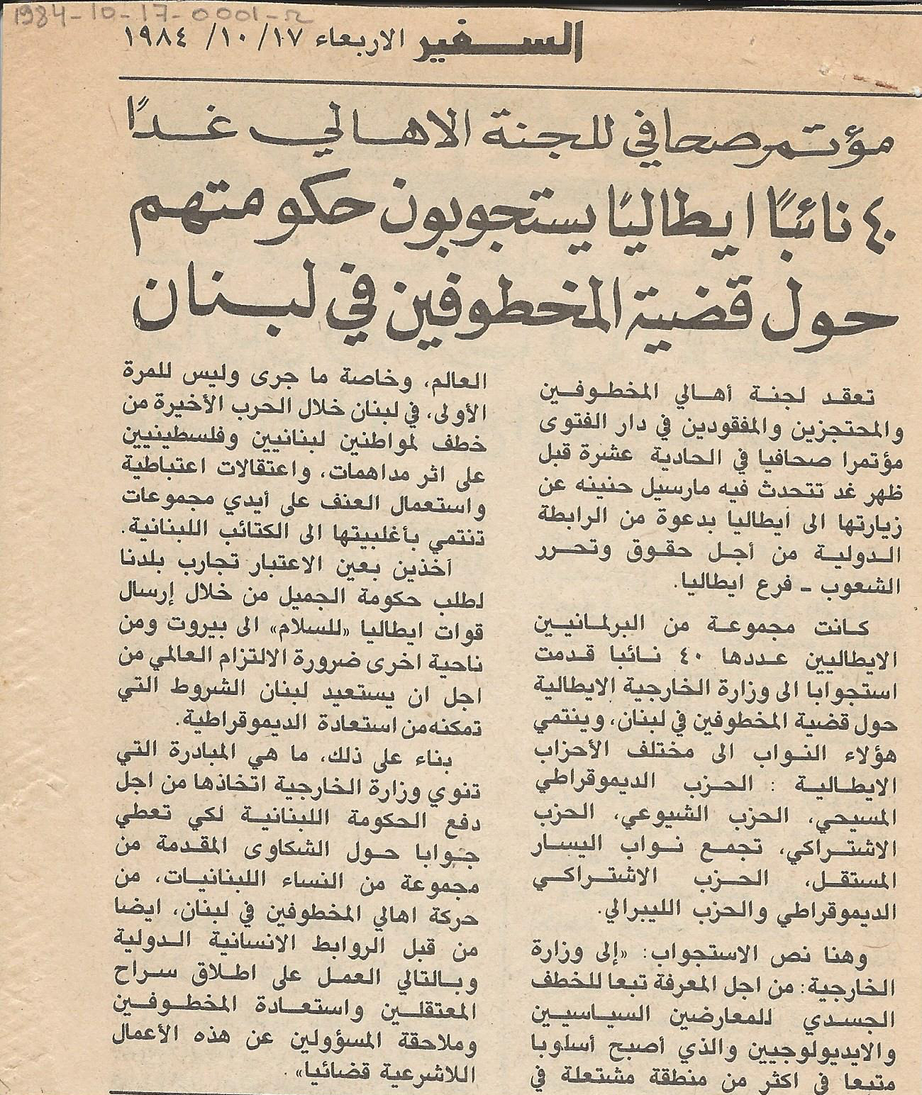 مؤتمر صحافي للجنة الاهالي غدا، 40 نائبا ايطاليا يستجوبون حكومتهم حول قضية المخطوفين في لبنان