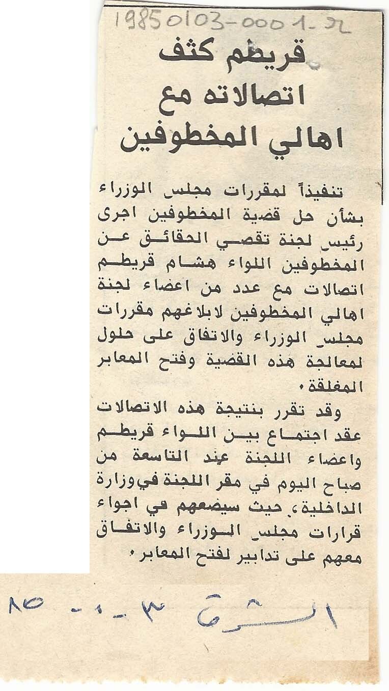 - ar قريطم كثف اتصالاته مع اهالي المخطوفين