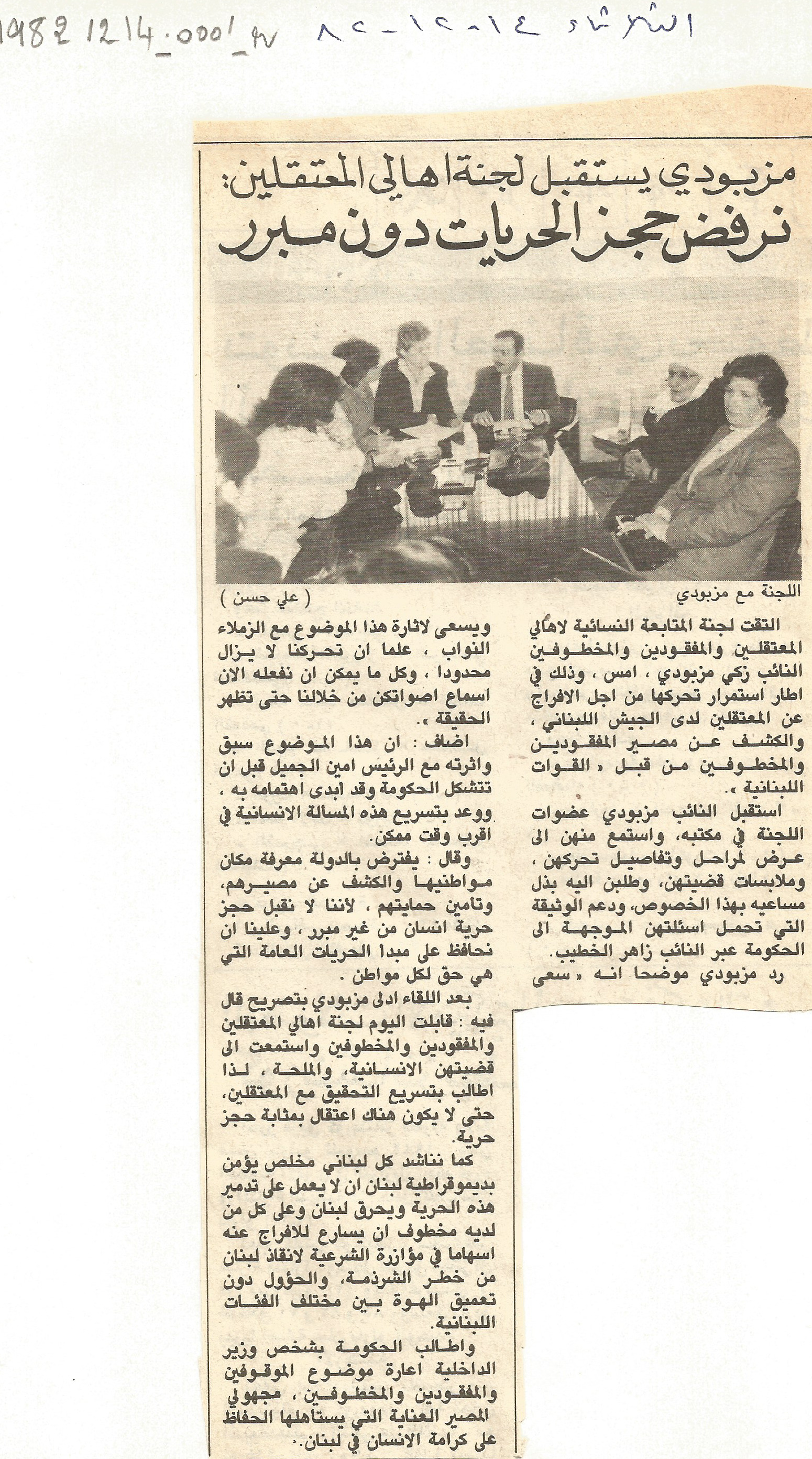 مزبودي يستقبل لجنة اهالي المعتقلين: نرفض حجز الحريات دون مبرر