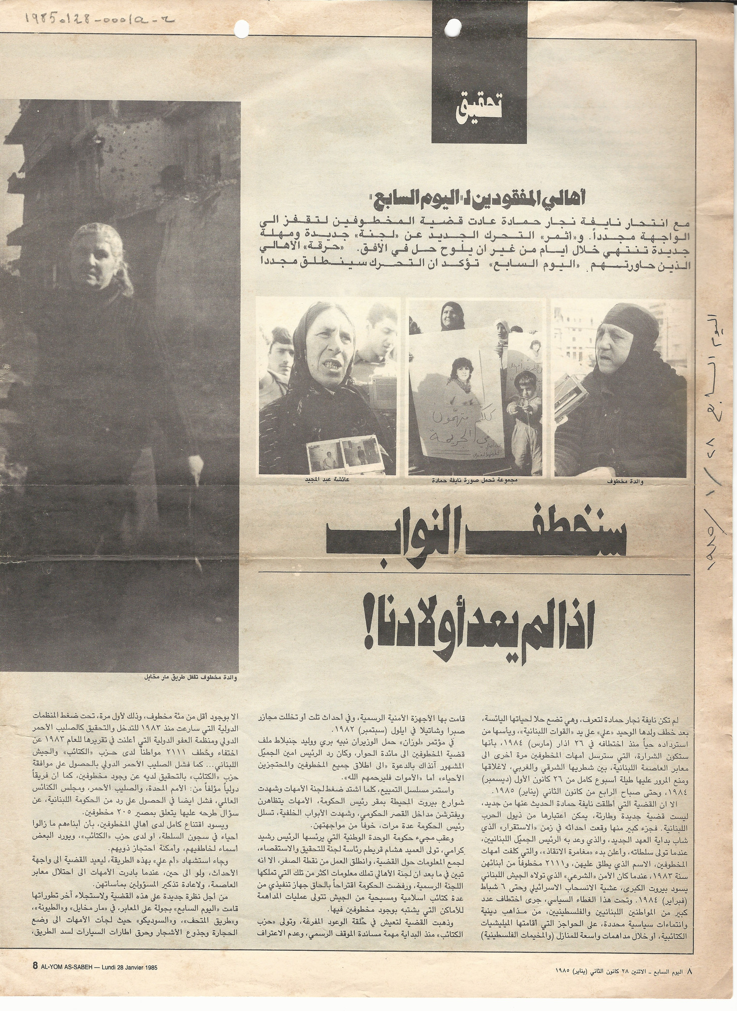 - en The families of the kidnapped to Youm7: If our children don't return, we will kidnap MPs.