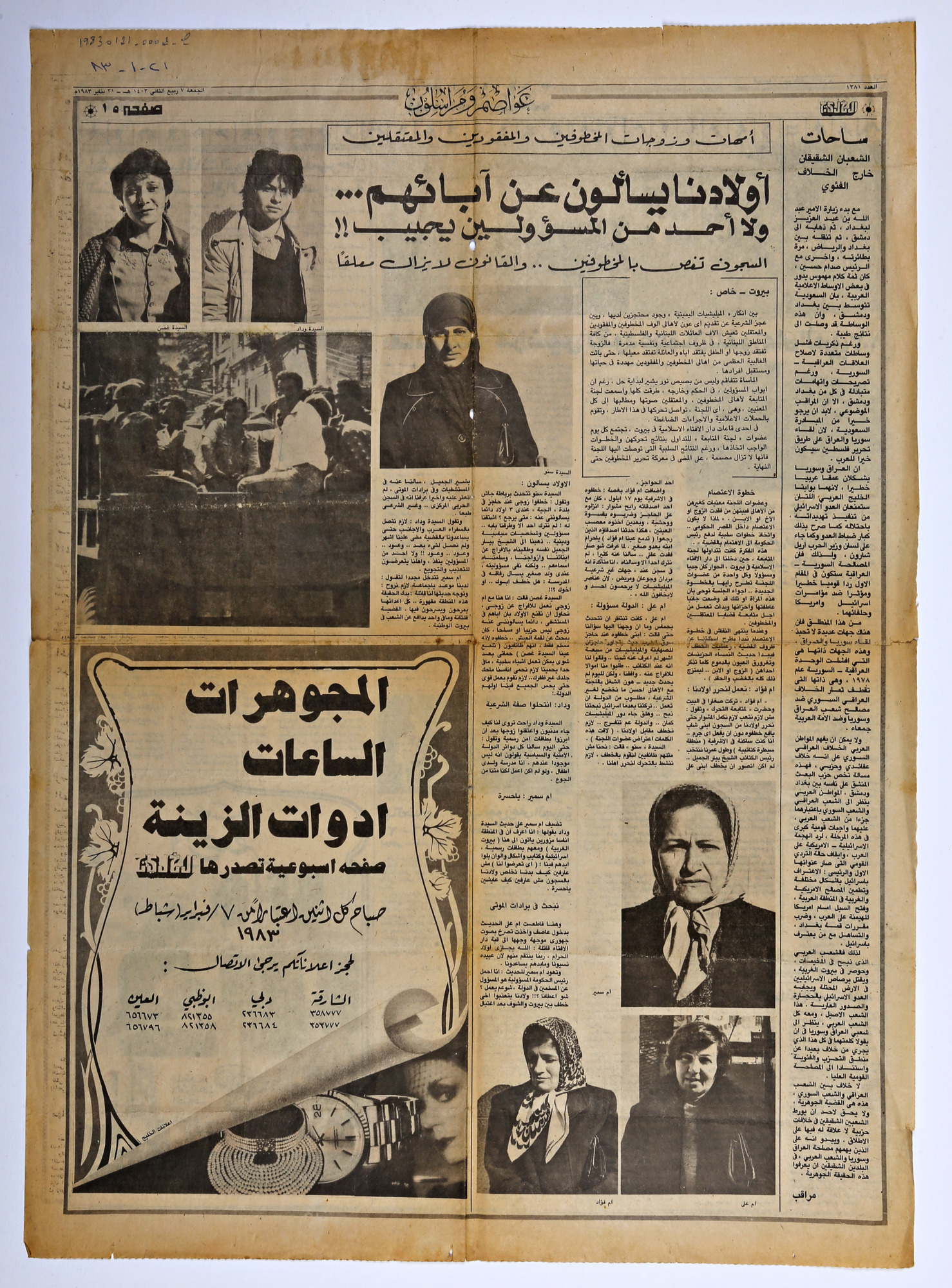 امهات وزوجات المخطوفين والمفقودين والمعتقلين، اولادنا يسألون عن ابائهم ولا احد من المسؤولين يجيب، السجون تغص بالمخطوفين والقانون لايزال معلقا